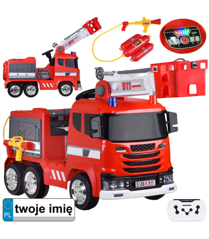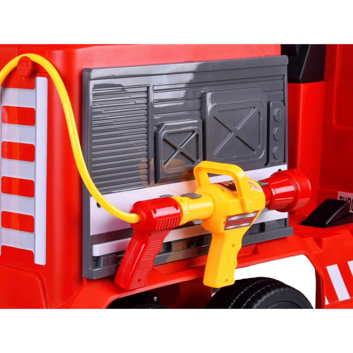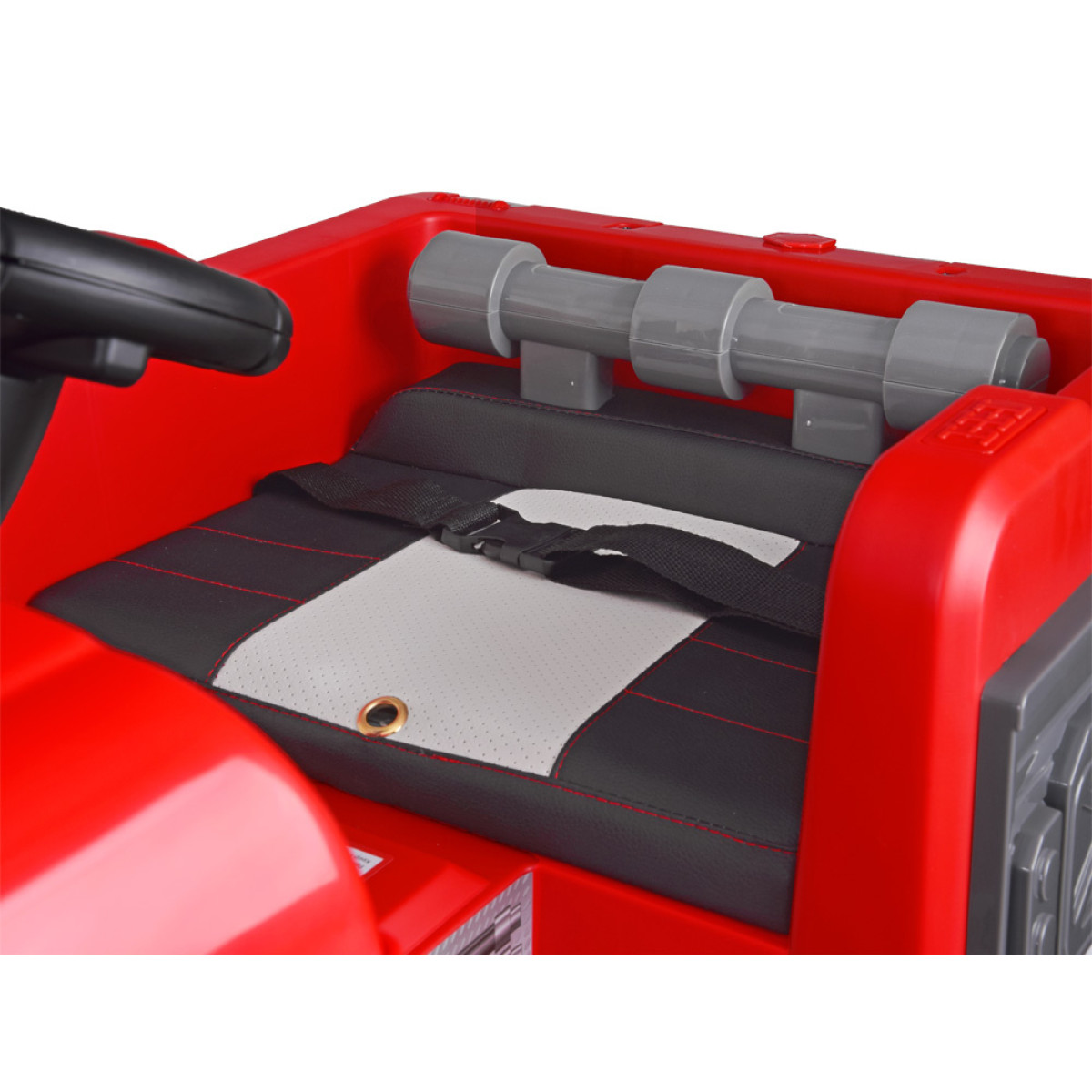 Mašīna ir aprīkota ar diviem 12V 45W motoriem, 12V 10Ah akumulatoru un vecāku tālvadības pulti. Ugunsdzēsēju mašīna nav aprīkota ar durvīm, kas atvieglo iekāpšanu un izkāpšanu. Iekšpusē ir sēdeklis ar eko-ādas pārvalku, un bērna drošību nodrošina drošības josta. EVA materiāla riteņi garantē ērtu braukšanu.