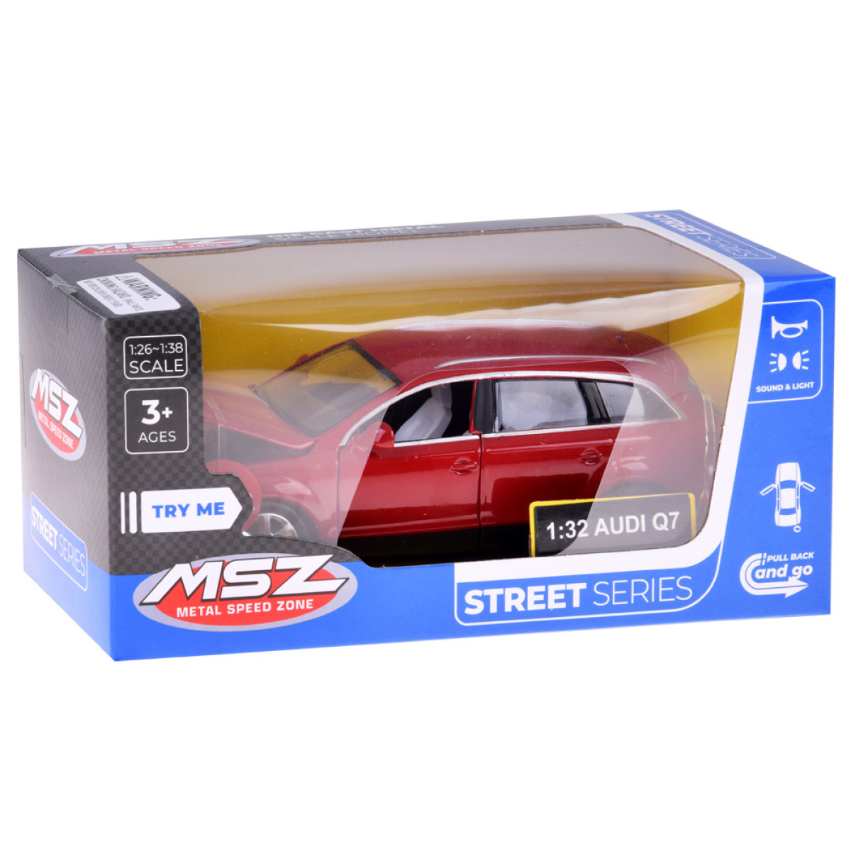 Šī rotaļlieta SUV Audi Q7 ir ideāli piemērota pilsētas braucieniem. Automašīna ir rūpīgi un estētiski izgatavota ar uzmanību pret vissīkākajām detaļām, kas noteikti iepriecinās katru mazo vadītāju. Automašīnai ir skaņas un gaismas efekti, atveramas durvis, bagāžnieks un motora pārsegs. Automašīna brauc, atvelkot rotaļlietu gludai virsmai, izmantojot Friction power mehānismu.