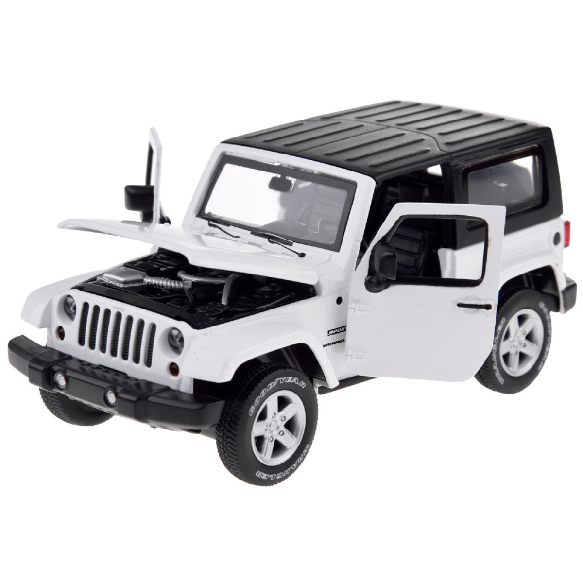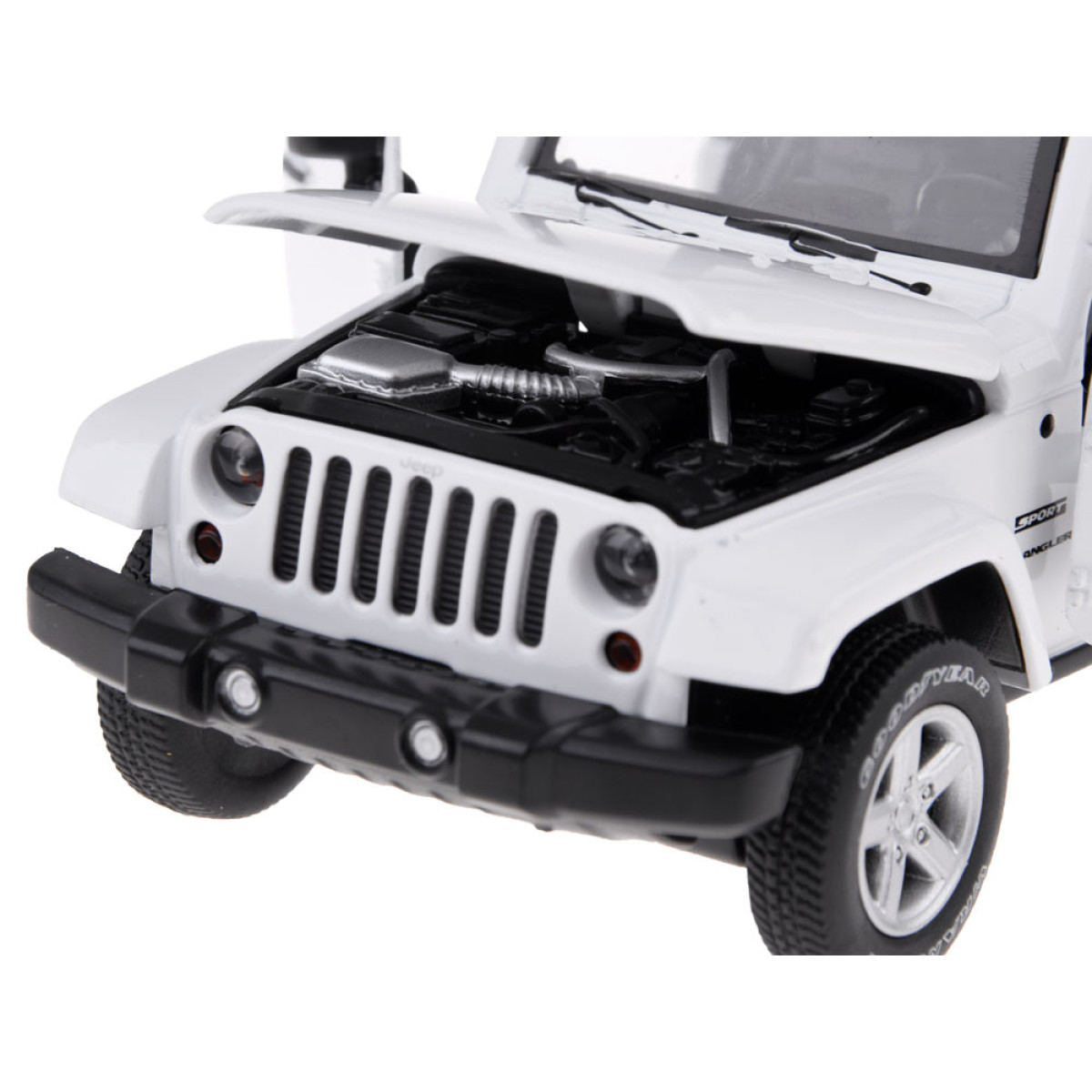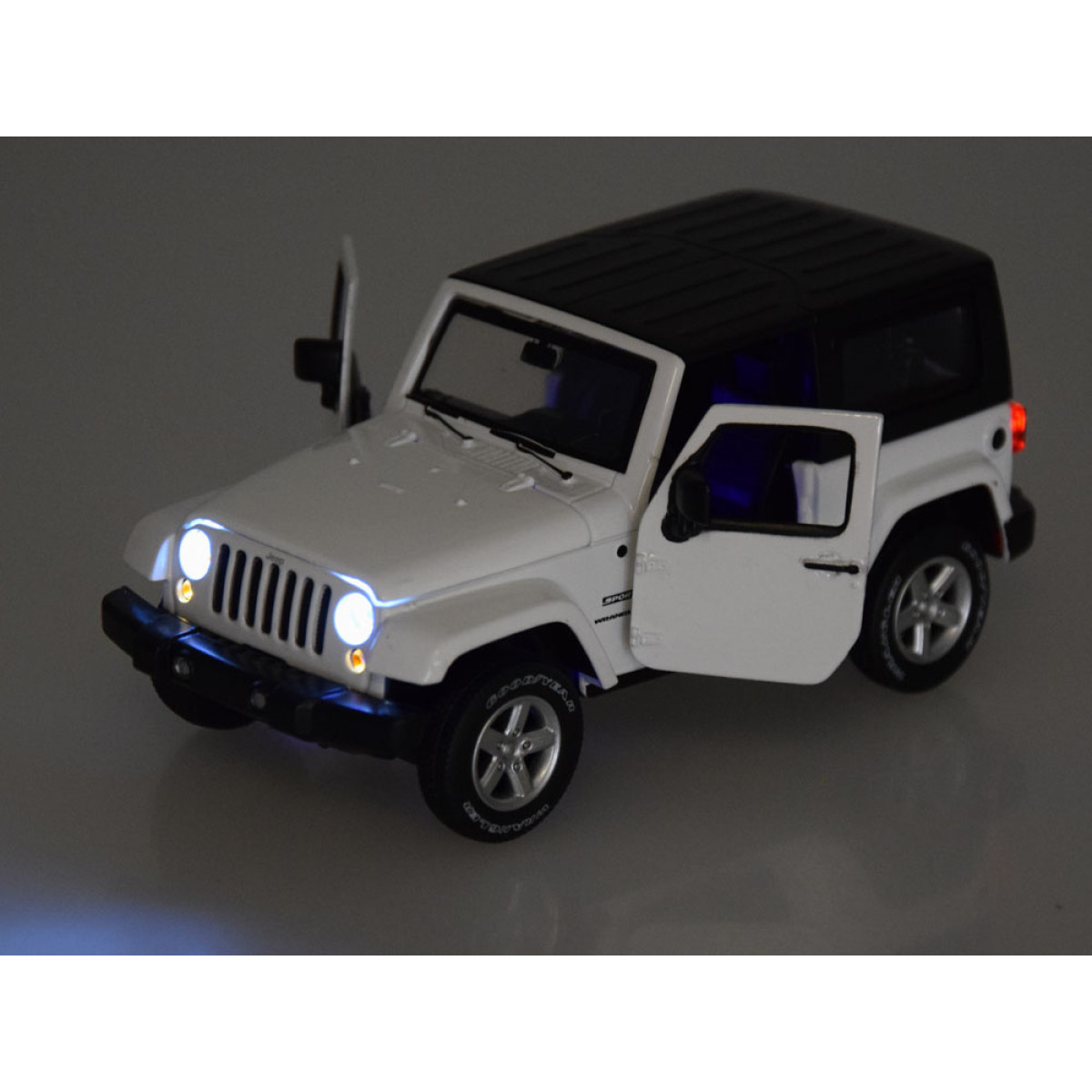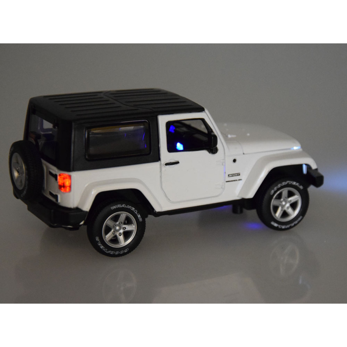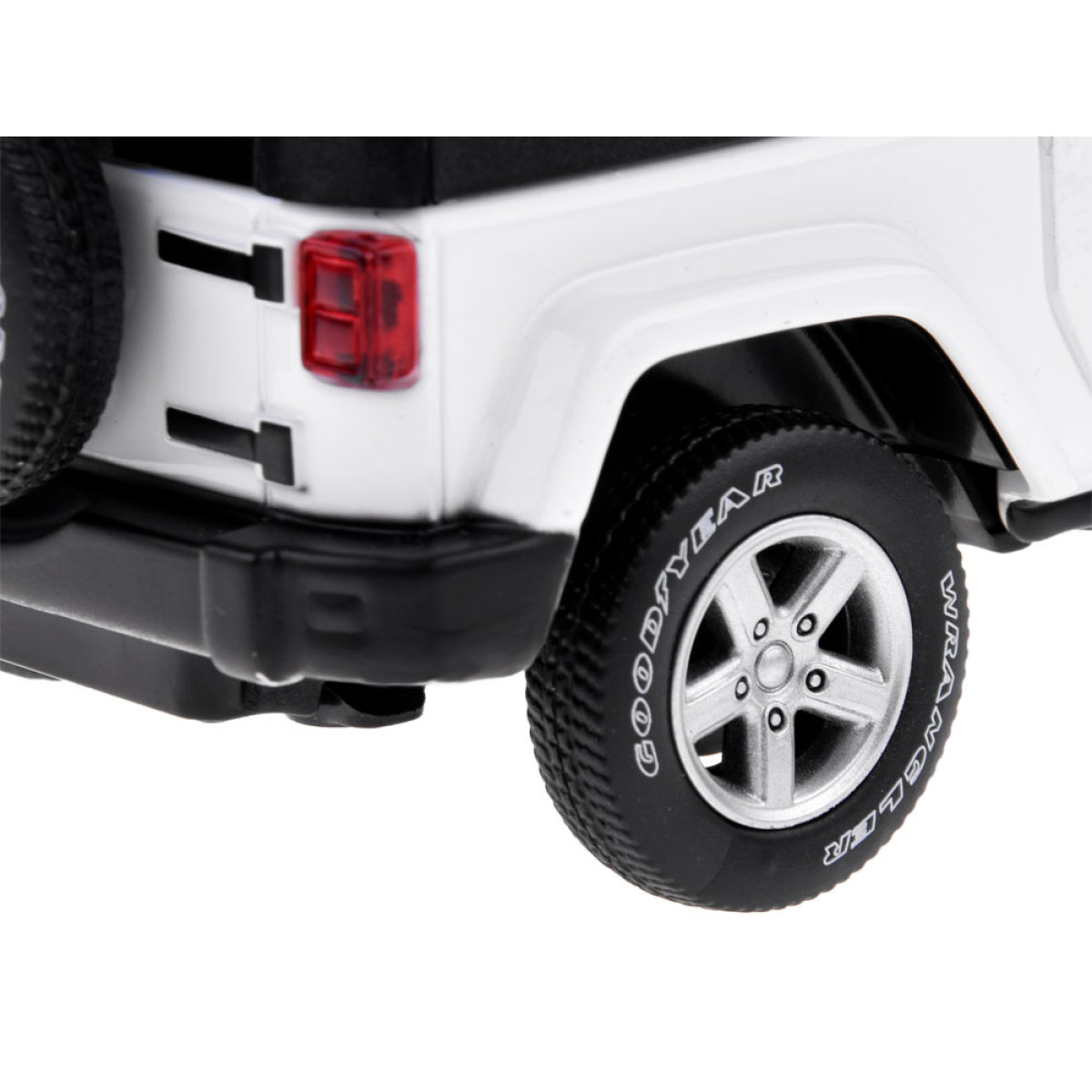 Džips Wrangler ir apvidus auto, kas piemērots braukšanai pa sarežģītu reljefu. Šis ir skaists klasika starp Jeep zīmola automašīnām. Automašīna ir izgatavota ļoti rūpīgi un estētiski, ar uzmanību pret sīkākajām detaļām, kas noteikti sajūsminās ikvienu mazo vadītāju. Auto ir aprīkots ar skaņas un gaismas efektiem, atveramām durvīm un kapuci. Automašīna pārvietojas, atvelkot rotaļlietu uz gludas virsmas atpakaļ, izmantojot Friction power mehānismu, kas nozīmē, ka auto tiek uzvilkts, velkot to atpakaļ.