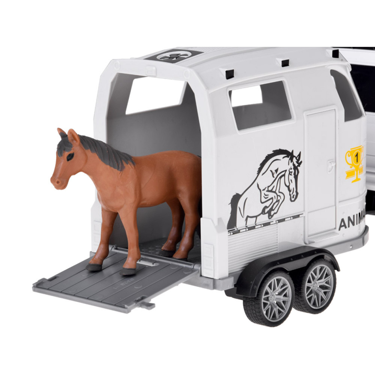 - komplektā iekļauts zirgs, kas ietilpst piekabē