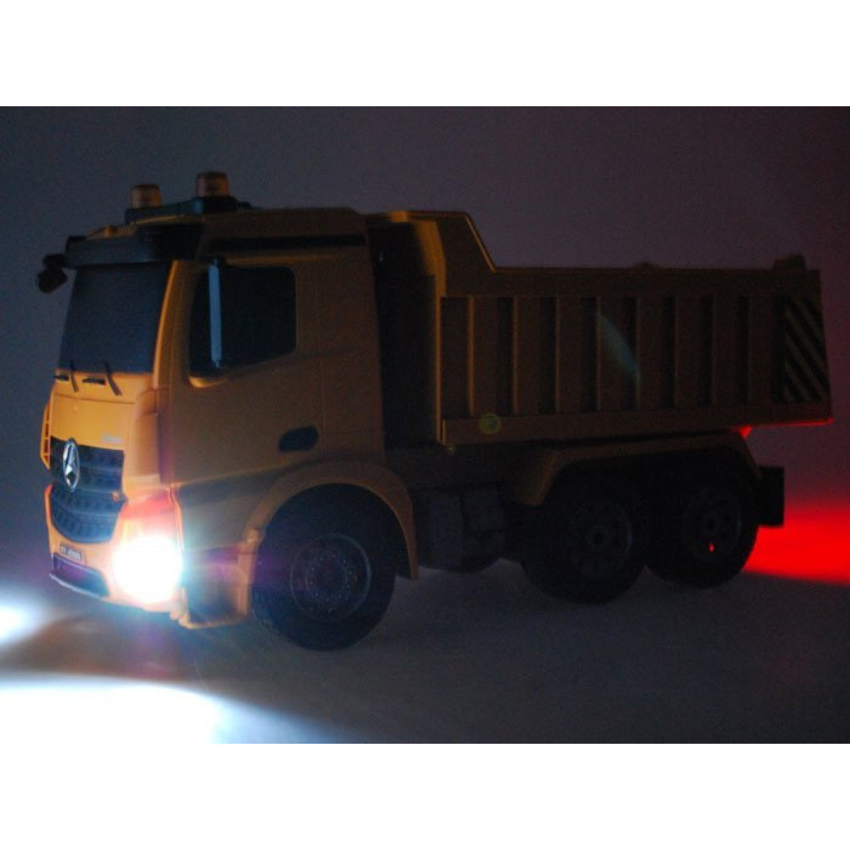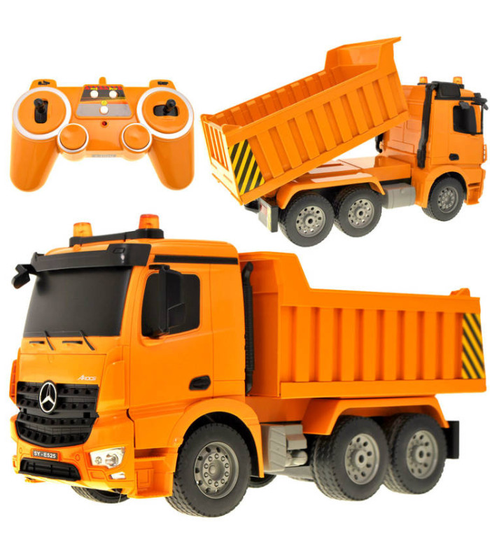 lielisks mercedes licencēts pašizgāzējs ar tālvadību, kas veidots īstu būvniecības pašizgāzēju stilā. Modelis izceļas ar melni dzeltenu krāsu kombināciju, izturīgu konstrukciju un reālistiskām funkcijām, kas padara rotaļu vēl aizraujošāku.
