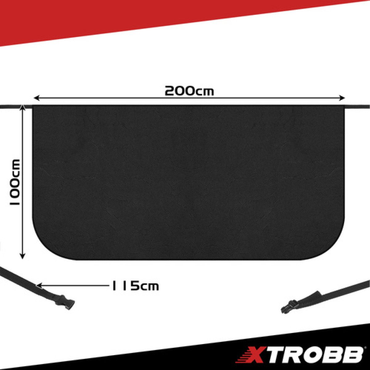 Ziemas rīti var sākties slikti, ja jūsu automašīnas priekšējais stikls ir pārklāts ar ledu vai sniegu. Xtrobb antisala aizsargs vakarā uzstādīts, no rīta ļauj ātri doties uz darbu bez skrāpēšanas un atkausētājiem. Lielais izmērs 200 x 100 cm der vairumam SUV, mikroautobusiem un autobusiem, un siksna ar klipsi ļauj cieši nostiprināt aizsargu un pielāgot to stiklam. Iekšējais stiprinājums palīdz stabilizēt paklāju vējā un samazina iespēju, ka tas noslīdēs. Ūdensnecaurlaidīgs un sala izturīgs materiāls nepieķeras pie stikla virsmas. Apmales šuves nodrošina izturību vairāku sezonu garumā.