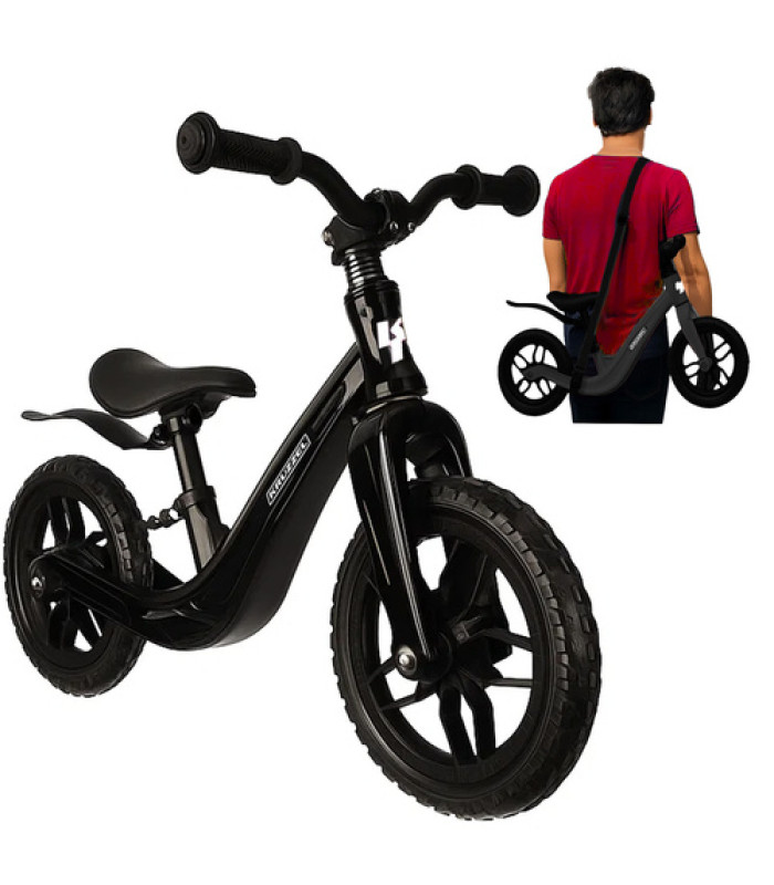 Bērnu līdzsvara ritenis 2+ KRUZZEL bērnu velosipēds viegls, 12" riteņi + plecu siksna, melns!