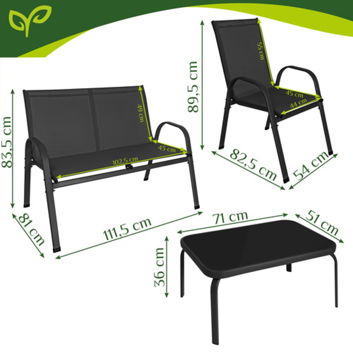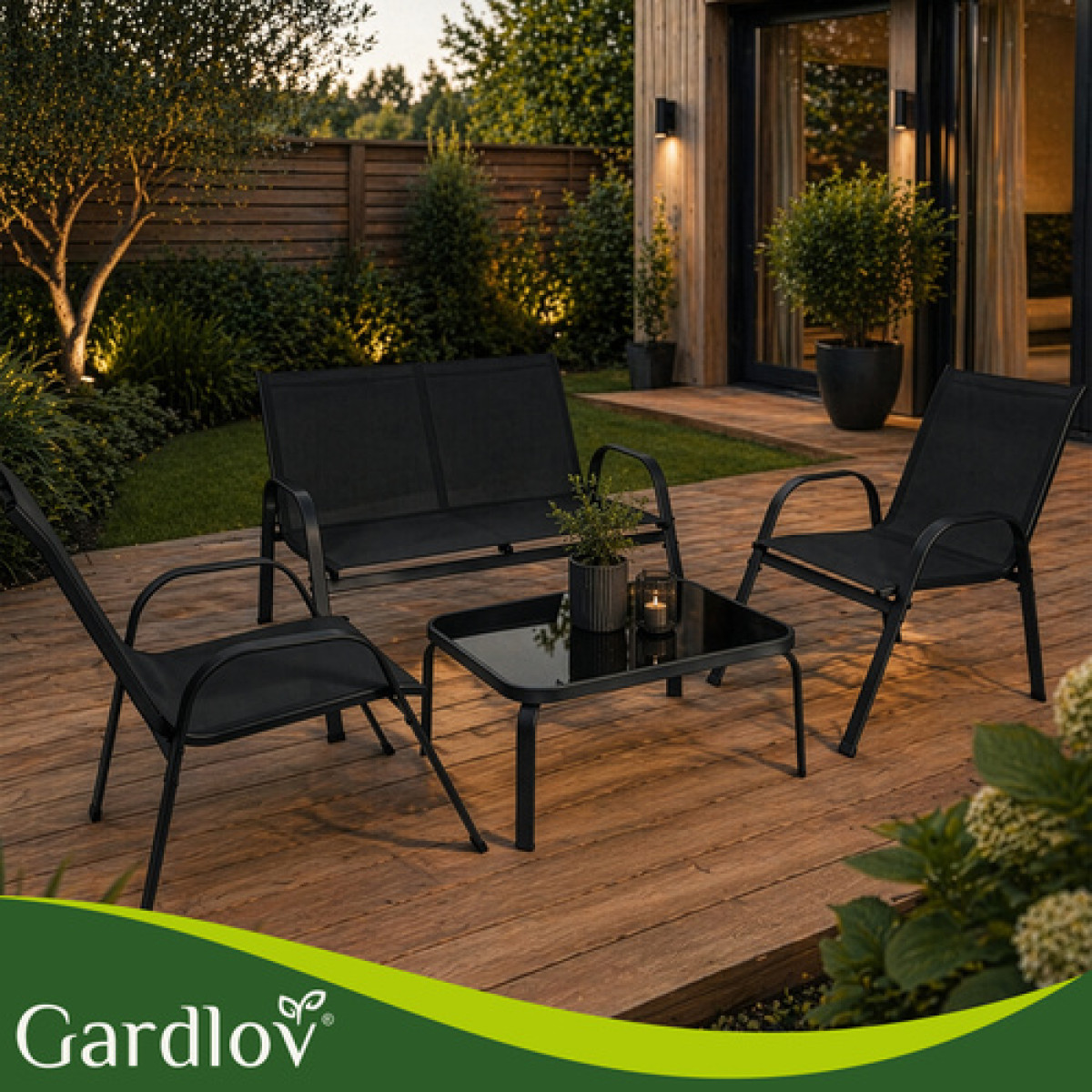 gardlov dārza mēbeļu komplekts ir stilīgs un ērts risinājums, lai izveidotu ideālu atpūtas zonu svaigā gaisā. Komplektā ietilpst divvietīgs dīvāns, 2 krēsli un galds ar stikla virsmu, tāpēc tas ir lieliski piemērots 4 personām. Šis mēbeļu komplekts nodrošina komfortu, izturību un elegantu izskatu, kas papildinās jebkuru dārzu, balkonu vai terasi.