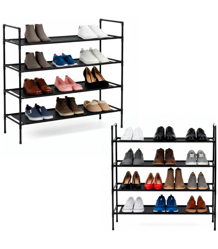 Apavu plaukts, 4 līmeņu apavu plaukts, metāla skapis ar plauktiem, 75x72x28 cm, melns