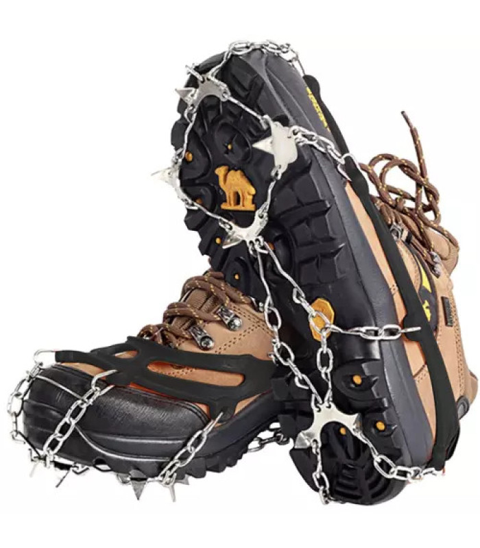 - Nerūsējošas ķēdes – izgatavotas no tērauda, izturīgas pret rūsu un koroziju. Elastīgais apkakle ļauj viegli uzvilkt uz apavu zoles, nebojājot apavus.