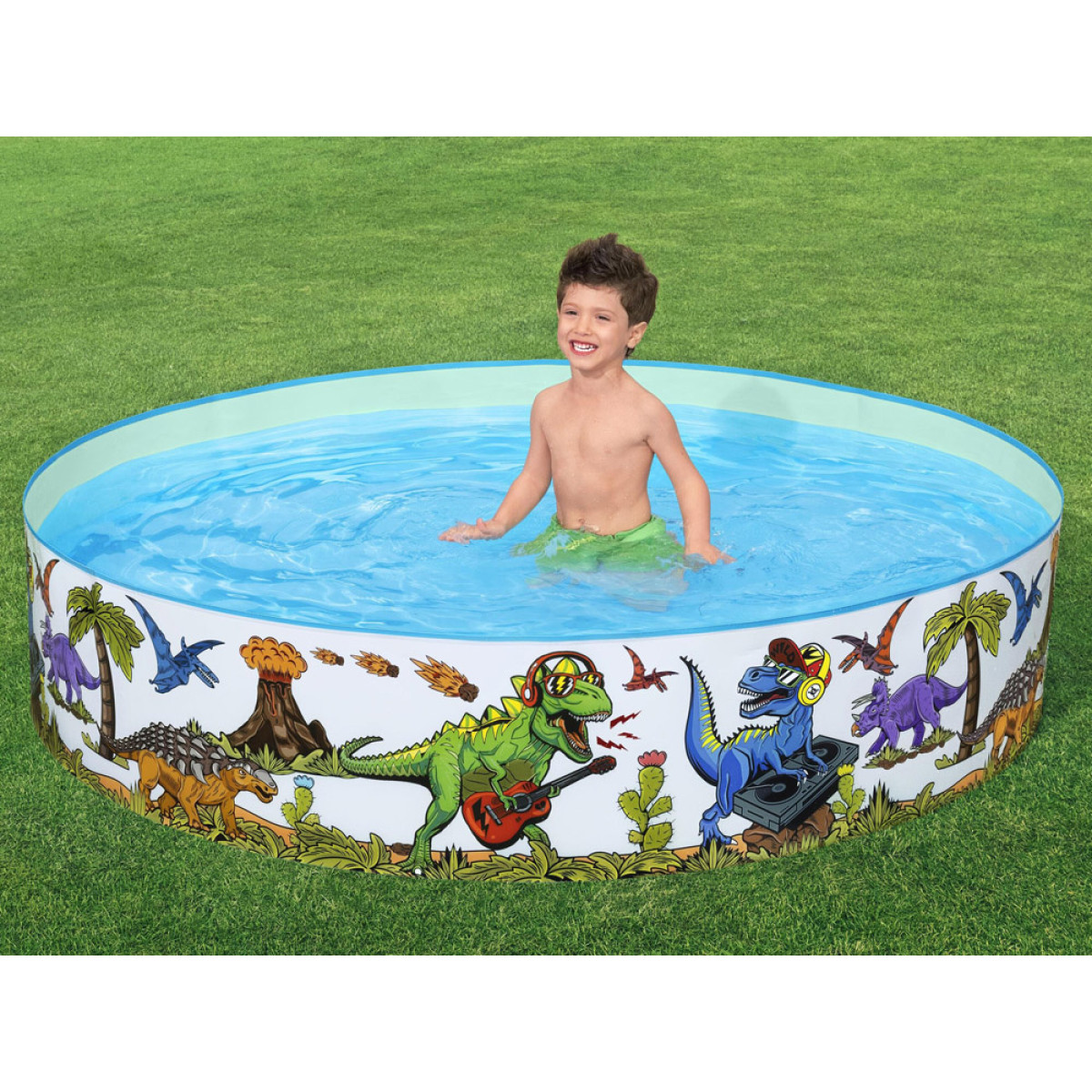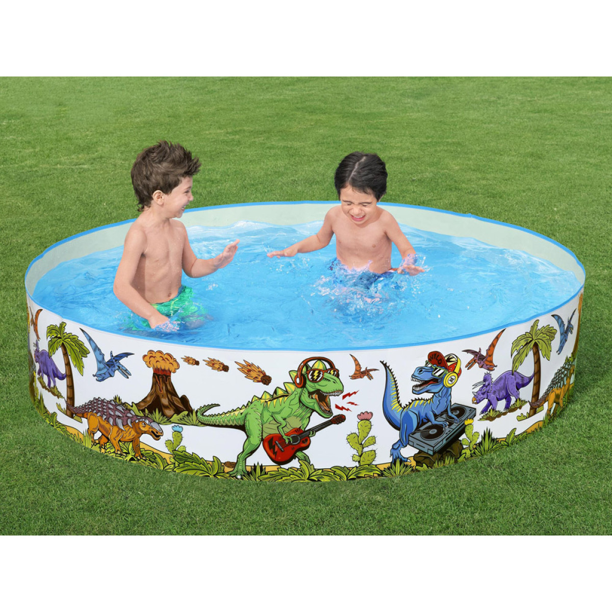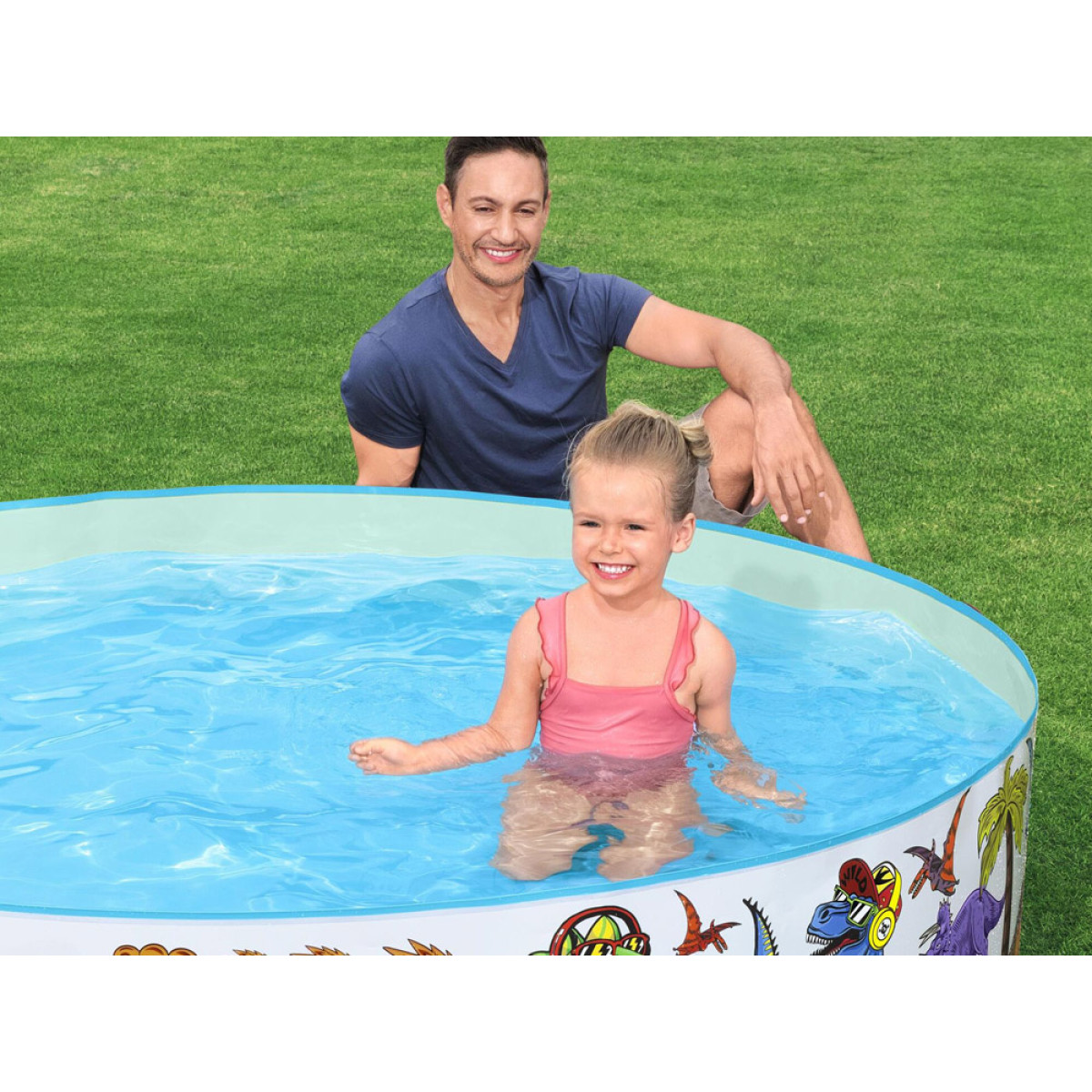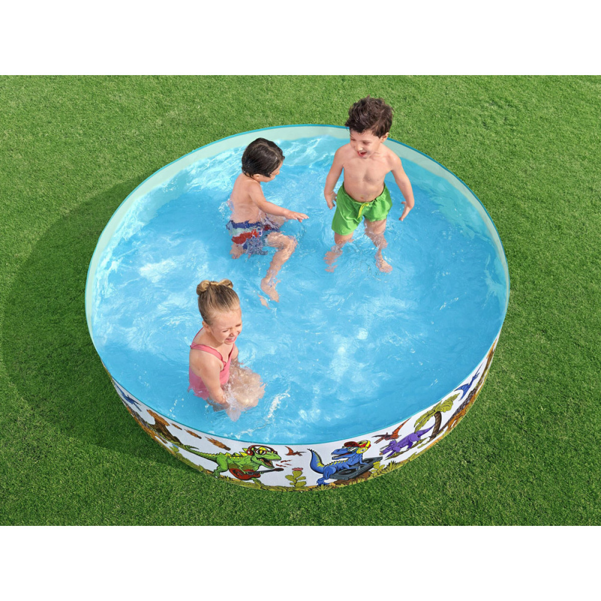 Dārza baseins "Dinozauri" ir ideāla vieta spēlēm brīvā dabā, ļaujot bērniem atvēsināties karstās dienās. Lieliski piemērots dārza ballītēm, ģimenes pasākumiem vai ikdienas atpūtai vasaras pēcpusdienās. Pateicoties vienkāršai uzstādīšanai un nojaukšanai, baseins ir viegli uzglabājams pēc sezonas beigām.