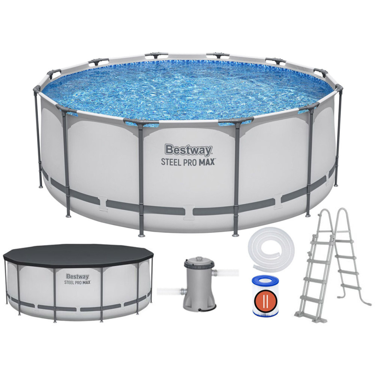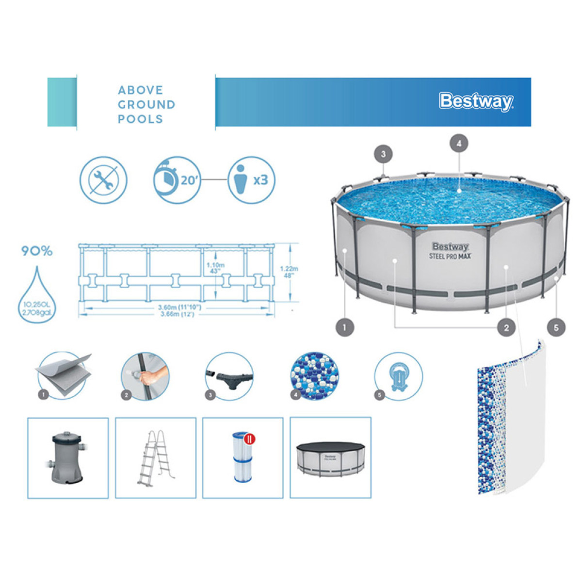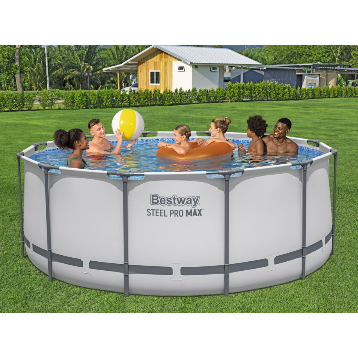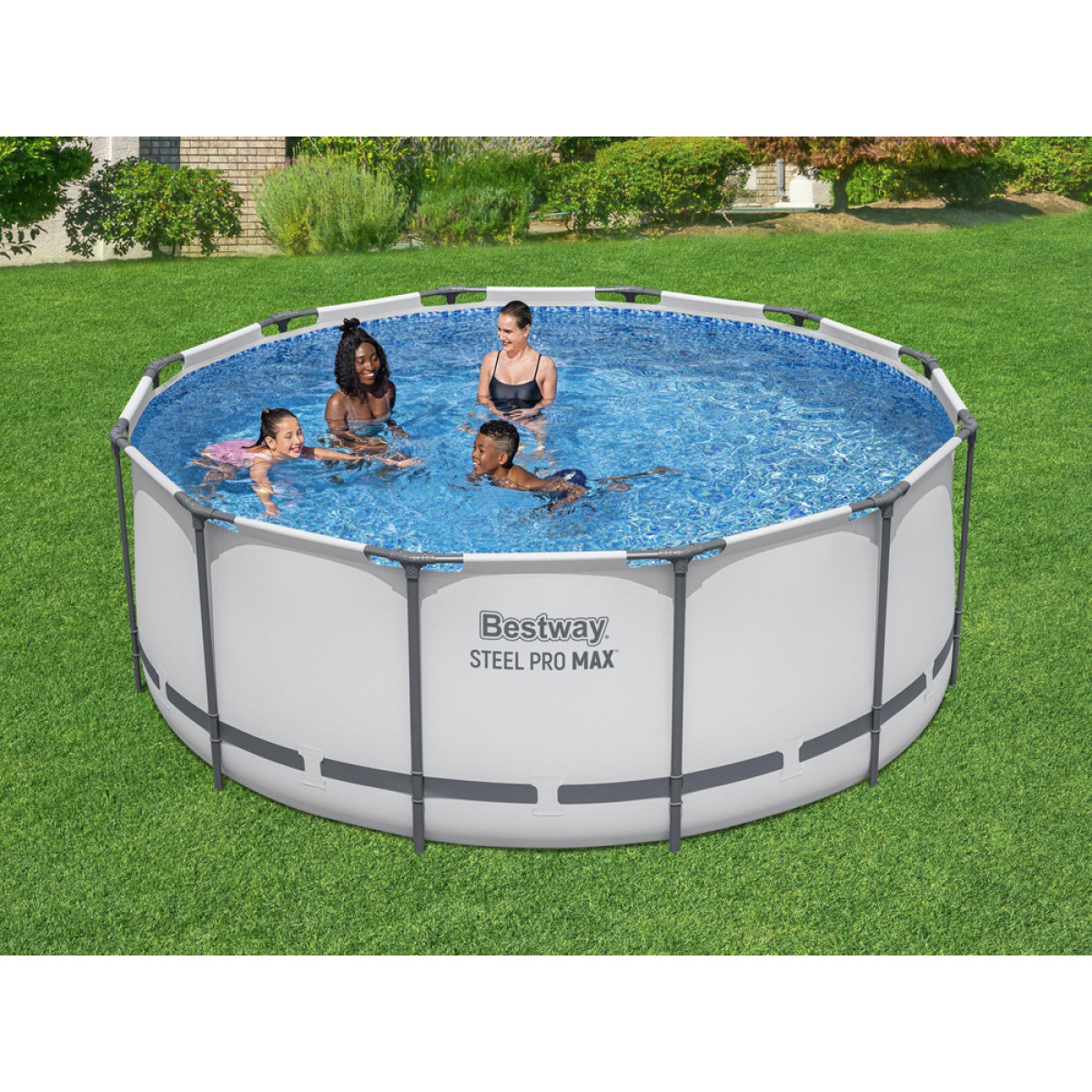 Baudieties vasaras karstajā dienā ar STEEL-PRO MAX™ Bestway baseinu, kura izmēri ir 366 x 122 cm un tilpums 10,250 l. Privāts dārza baseins ir pietiekami plašs, lai tajā varētu baudīt laiku gan bērni, gan pieaugušie.