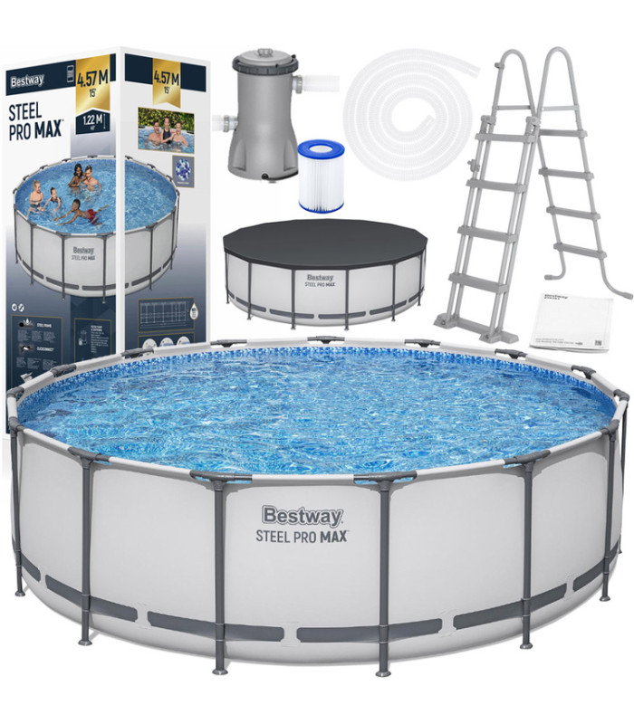 Dārzā uzstādāmais Bestway STEEL-PRO™ karkasa baseins ar izmēriem 457 x 122 cm un tilpumu 16,015 l nodrošina komfortablu atvēsināšanos karstās dienās. Privātais dārza baseins ir pietiekami plašs, lai to varētu izmantot gan bērni, gan pieaugušie.