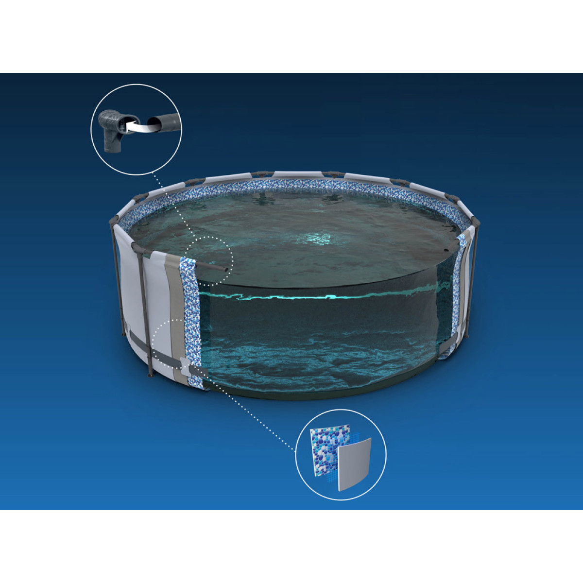 - Augstākās kvalitātes, korozijizturīgs cinkots tērauda rāmis, kas padara baseinu ļoti stabilu. Plūsmas vadības ātrie savienojumi. Ļoti vienkārša un ātra montāža. Baseinu var montēt bez instrumentiem!