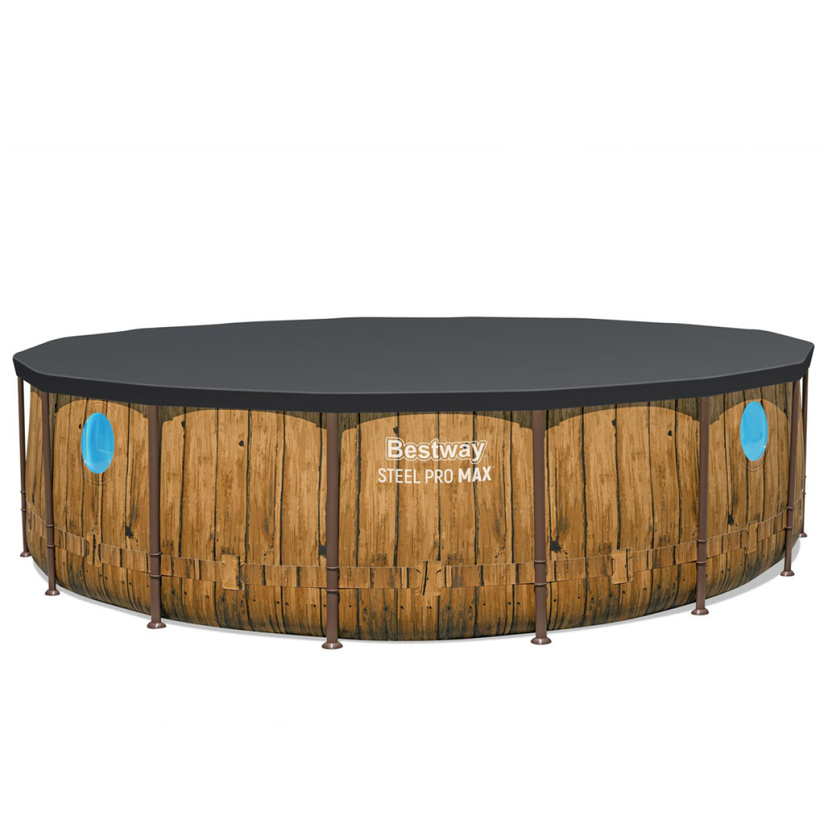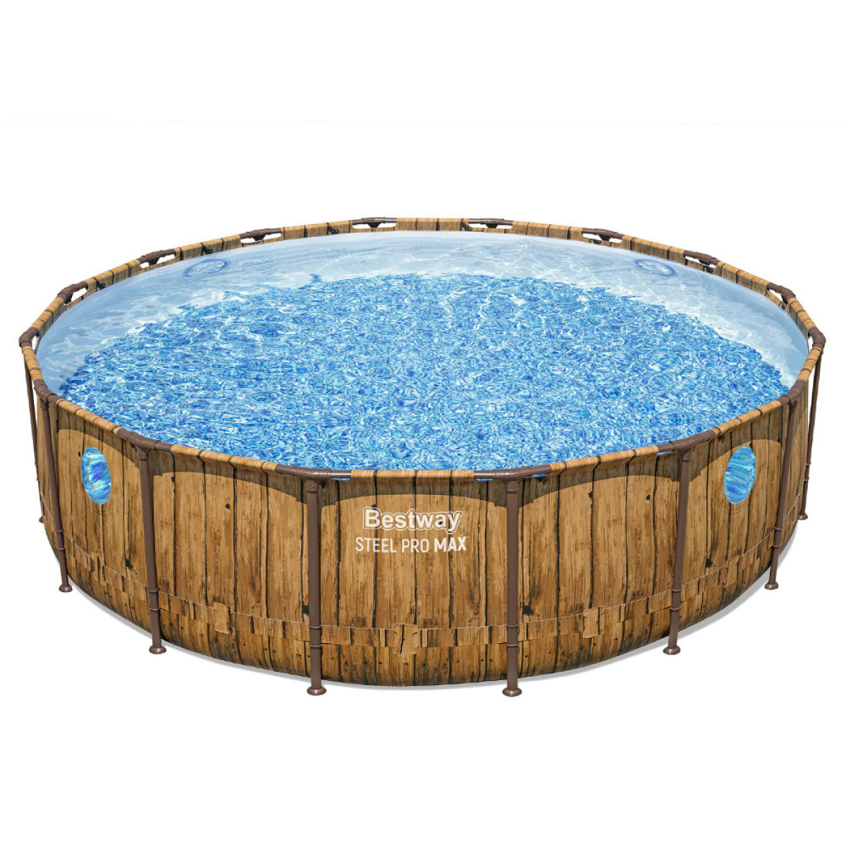 Dārza Bestway Power Steel™ Swim Vista Series™ stelažu baseins ar izmēriem 488 x 122 cm un 19,480 l tilpumu nodrošina komfortablu atvēsināšanos karstā dienā. Privātais dārza baseins ir pietiekami plašs, lai to varētu izmantot gan bērni, gan pieaugušie. Unikālais baseina dizains, kas imitē koka dēļus, lieliski saskanēs ar jebkuru dārzu. Papildus baseins ir aprīkots ar logu, kas ļauj vērot savu dārzu no zemūdens perspektīvas.