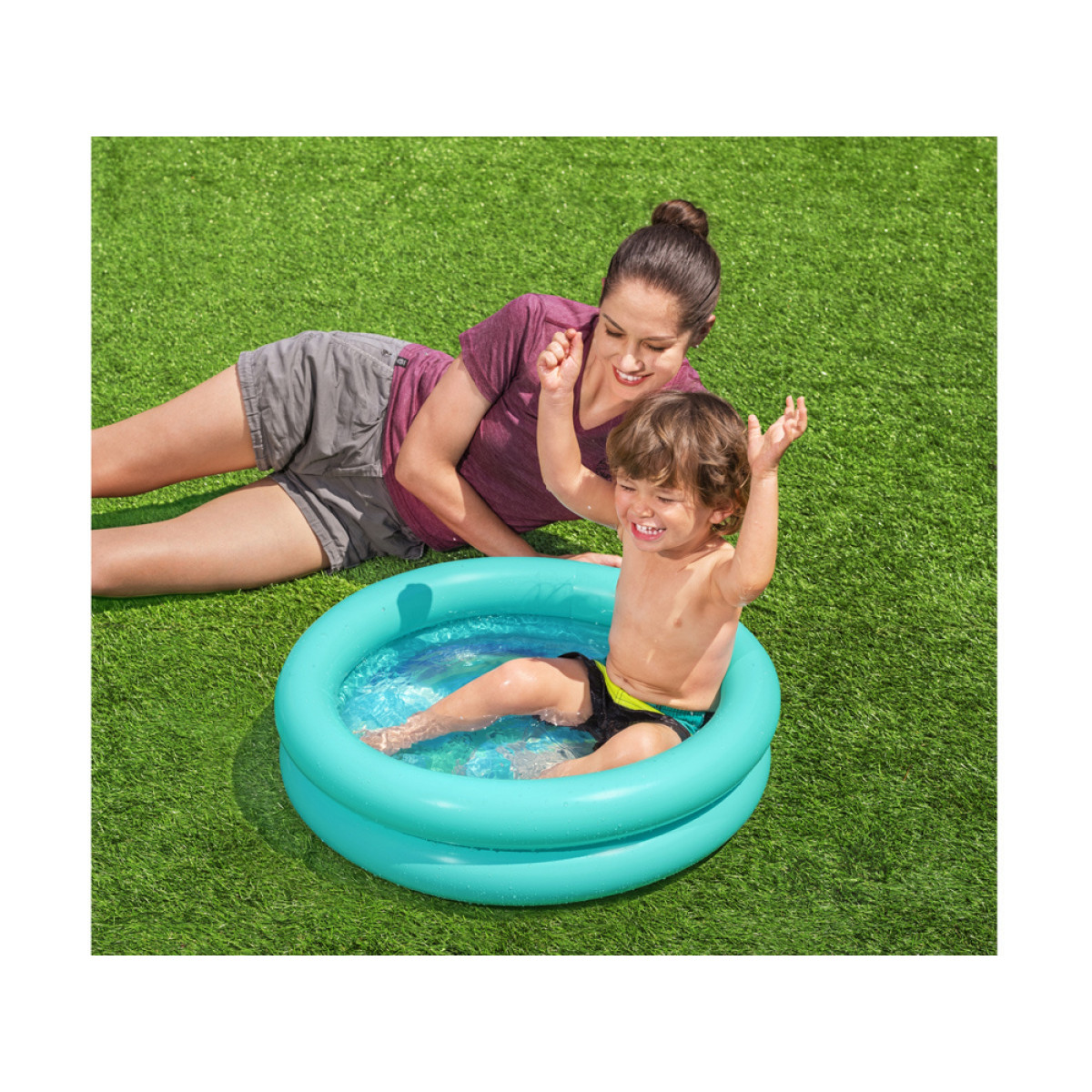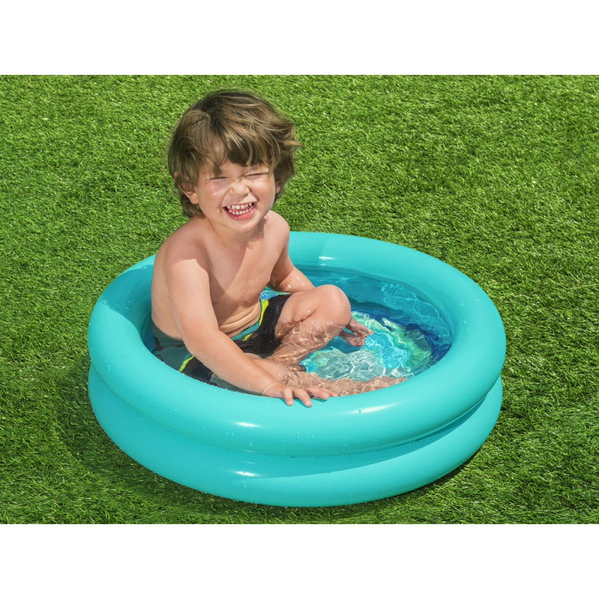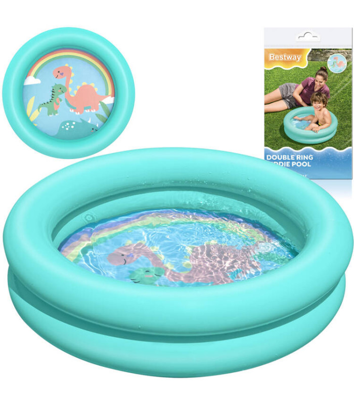 Piepūšamais baseins ar izmēriem 61cm x 15cm ir ideāls produkts mazuļiem. Baseins ir izgatavots no izturīga vinila materiāla un ir aprīkots ar divām gaisa kamerām un drošības vārstu, kas novērš gaisa izplūdi. Tas sastāv no diviem piepūšamiem gredzeniem, katrs no tiem tiek piepūsts atsevišķi. Baseina dibenā ir uzdrukāti jautri dzīvnieciņi, kas padarīs katru peldēšanos priecīgu. Baseina tilpums ir 21 litrs, ieteicamais piepildījuma līmenis ir 75%. Kompaktais izmērs un svars ļauj to viegli pārvietot uz pludmali, dārzu vai ceļojumu.
