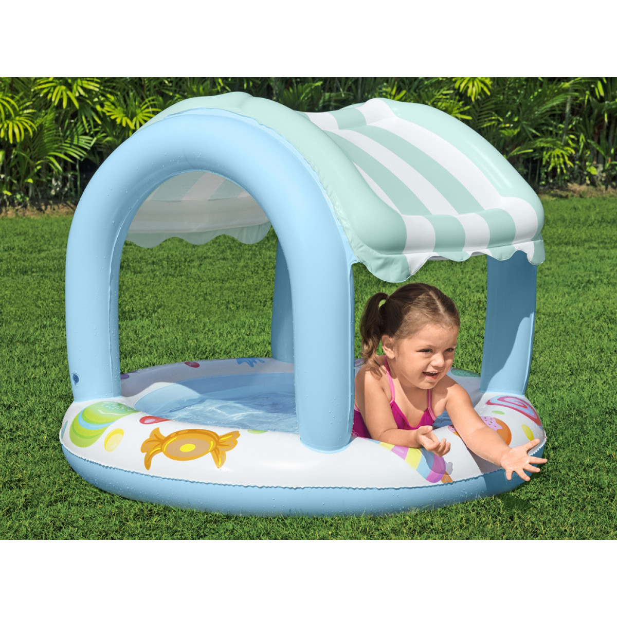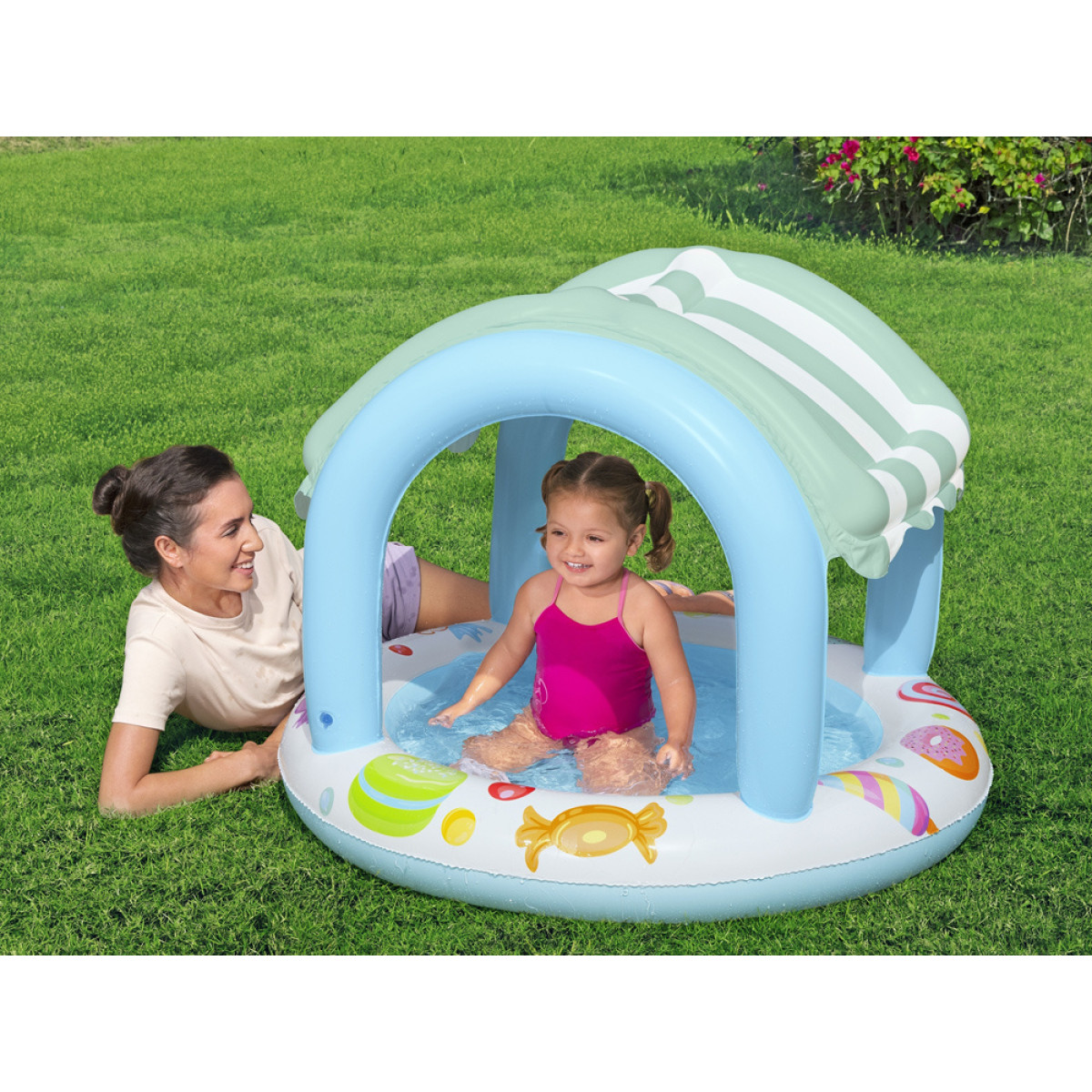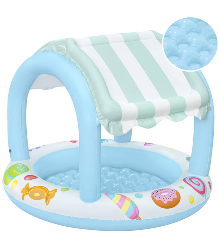 Bestway bērnu baseins ar jumtu un piepūšamu dibenu ZILĀ-BALTĀ 104cm 52638
