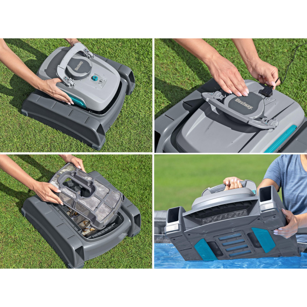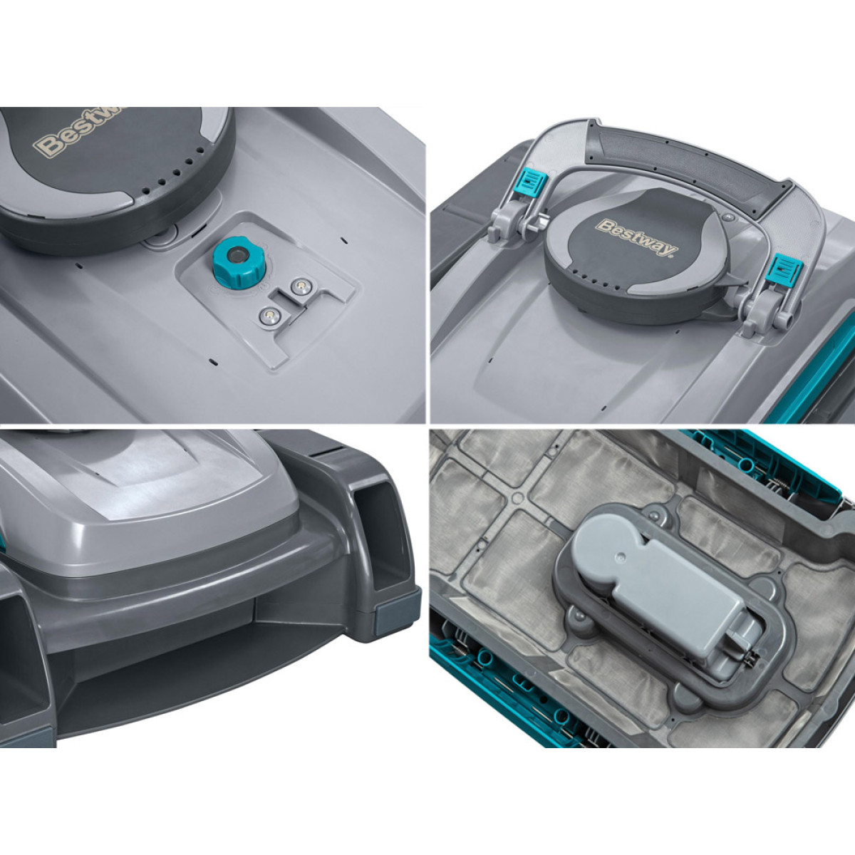 Bezvadu konstrukcija un akumulators: Pateicoties bezvadu konstrukcijai un iebūvētajam litija akumulatoram, robots nodrošina pilnīgu kustības brīvību bez kabeļu sapīšanās. AquaTronix™ Pro G300 automātiski pārvietojas pa baseinu, savācot lapas, smiltis, kukaiņus un citus netīrumus gan no dibena, gan no ūdens virsmas.