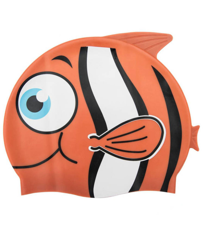 Bērnu peldcepure zivtiņas formā, kas aprīkota ar spurām un astīti, ir īpaši izstrādāta mazajiem ūdens prieku cienītājiem.