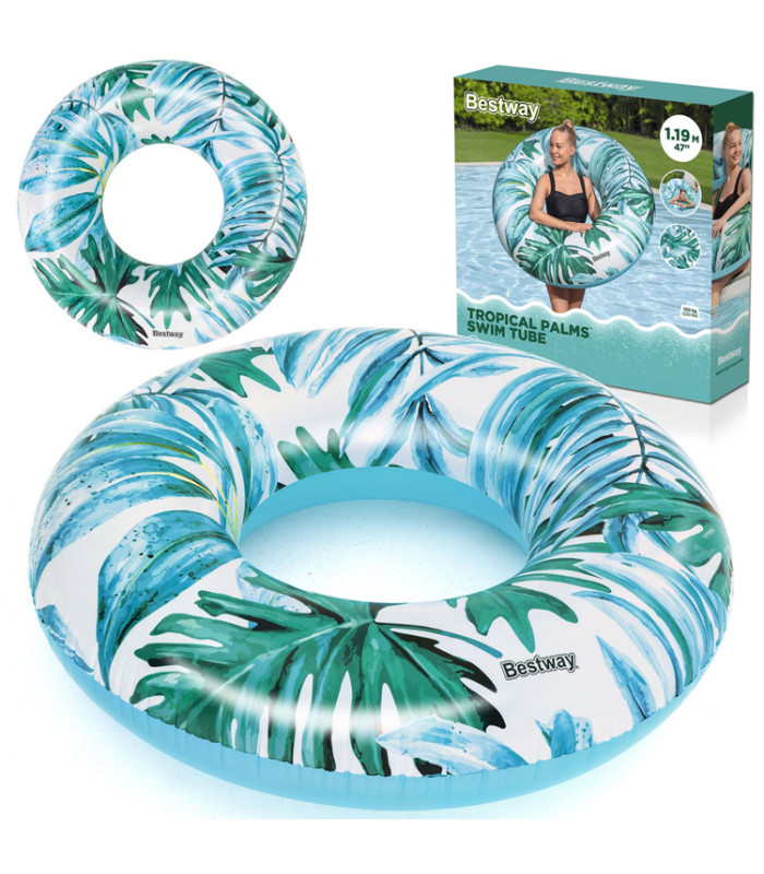 Piedāvā komfortablu atpūtu jebkurā pludmalē gan Latvijā, gan ārzemēs. Tropiskais dizains un krāsu gamma būs lielisks akcents jebkurā atvaļinājuma pludmalē. Riņķa izmērs 119 cm ērti der vienai personai. Izgatavots no izturīga PVC materiāla, kas nodrošina ilgstošu lietošanu, turklāt riņķis ir aprīkots ar remonta plāksteri iespējamām bojājumu gadījumos. Tropiskais dizains nodrošinās lieliskas fotogrāfijas no atvaļinājuma.