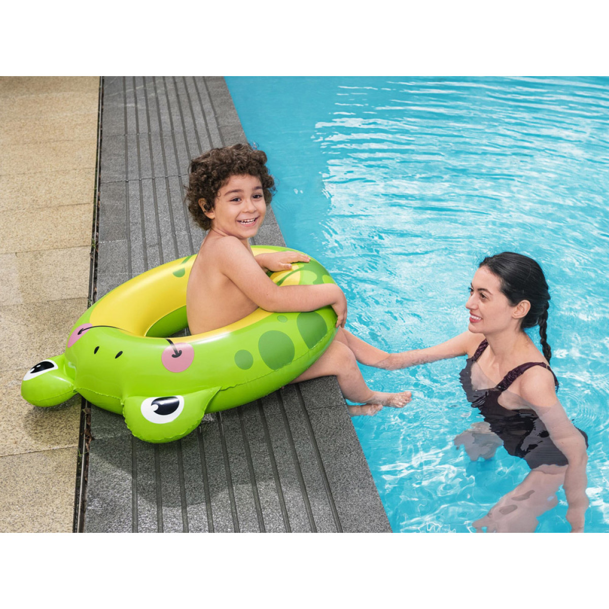 Krāsains Bestway zīmola peldēšanas riņķis, kas paredzēts bērniem vecumā no 3 līdz 6 gadiem. Pievilcīgais vardes motīvs un draudzīgā zaļā krāsa mudina mazākos uz ūdens priekiem un pieradināšanu pie ūdens. Riņķis būs ideāli piemērots gan baseinā, gan vasaras atpūtai pie ezera vai jūras.