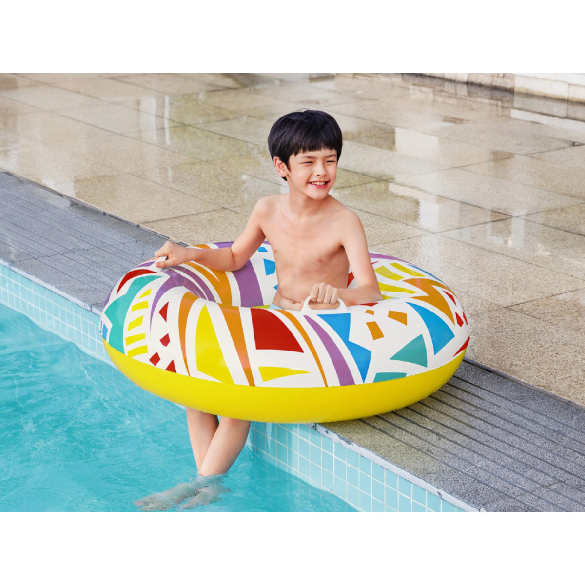 Bestway piedāvā jaunāko peldēšanas riņķi Geometric, kas ir ideāls karstām vasaras dienām. Liels riņķis ar diametru 107 cm piemērots bērniem no 12 gadu vecuma un pieaugušajiem.