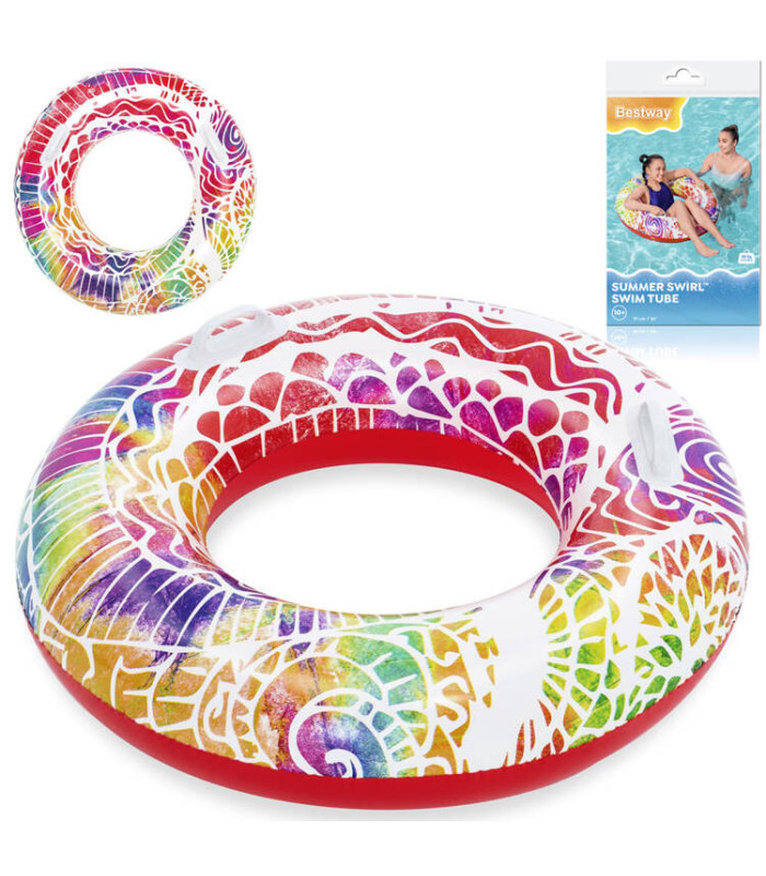 Bestway peldēšanas riņķis ar rokturiem piedāvā jautru un drošu vasaras izklaidi bērniem no 10 gadu vecuma. Riņķis ar 91 cm diametru ir aprīkots ar diviem rokturiem, kas nodrošina stabilitāti ūdenī. Izgatavots no izturīga PVC materiāla un aprīkots ar drošības vārstu ērtai lietošanai. Pievilcīgais vasaras dizains aicina uz jautrām ūdens spēlēm.