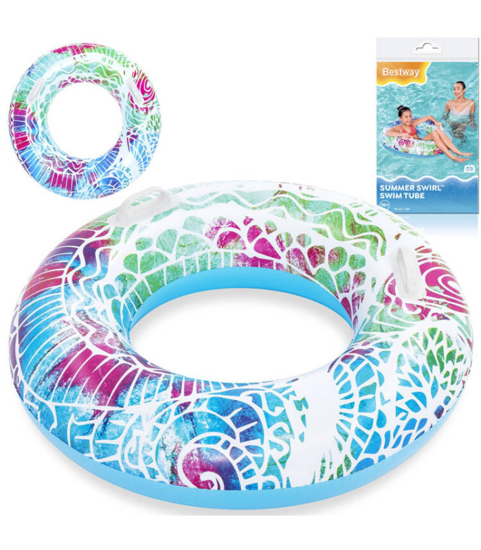 Bestway piepūšamais peldēšanas gredzens ar rokturiem ZILS 91cm 36084
