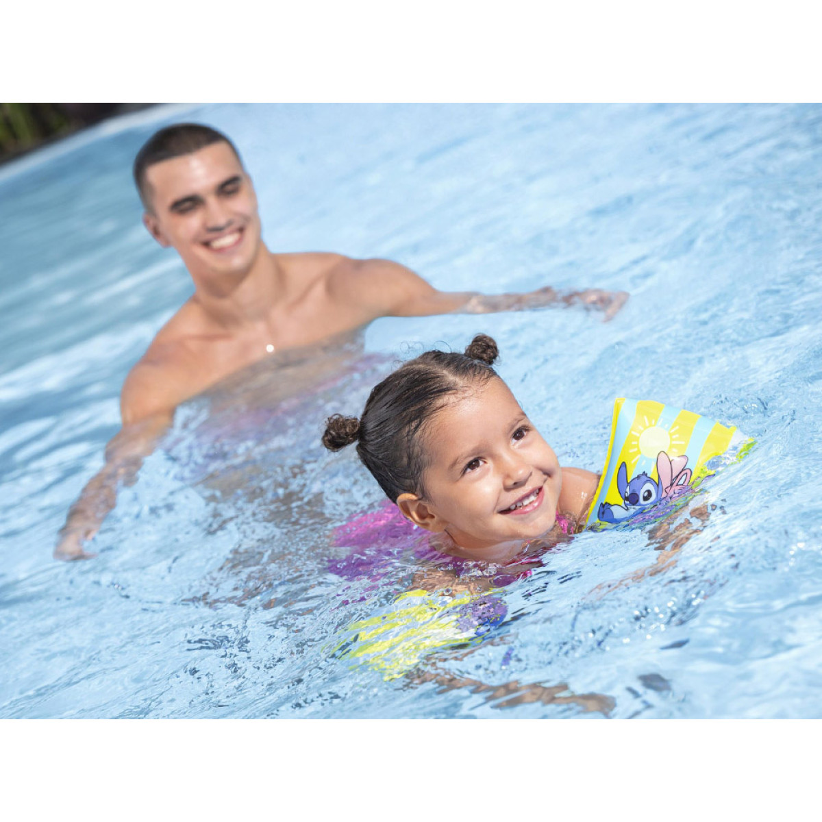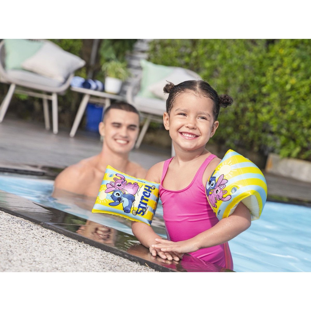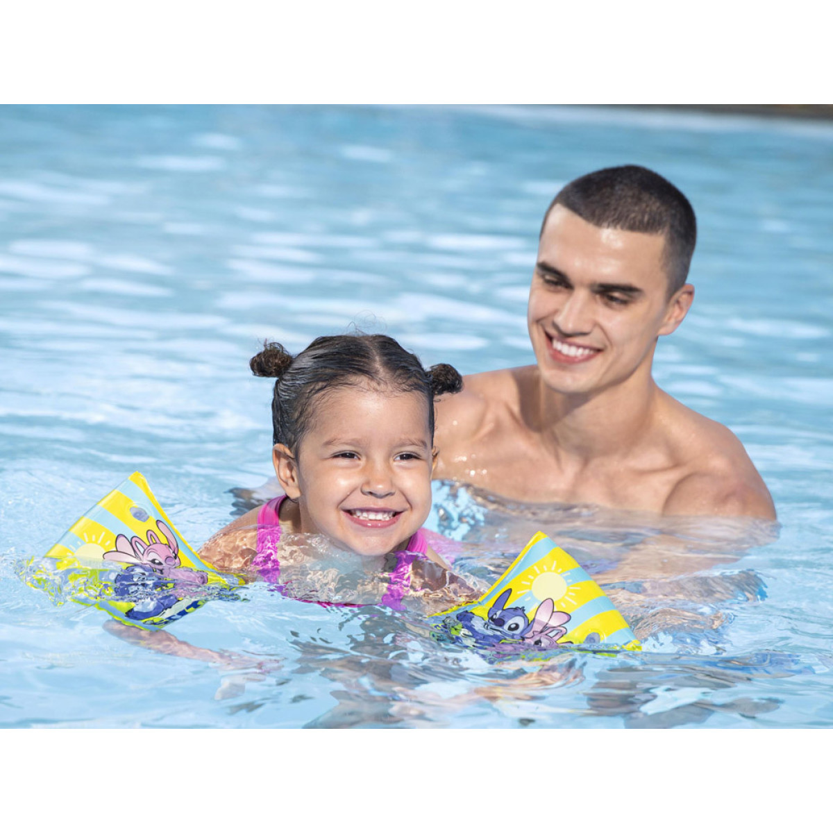 Krāsainas peldēšanas uzmavas ar Disney 'Lilo un Stičs' motīvu ir lielisks atbalsts bērniem, kuri sper pirmos soļus ūdenī. Pasteļtoņi un jautri Stiča un Andžijas tēli padara mācīšanos un rotaļas ūdenī vēl patīkamākas. Uzmavas lieliski derēs baseinā, pie ezera vai brīvdienu braucienos, palīdzot bērnam justies drošāk ūdenī.