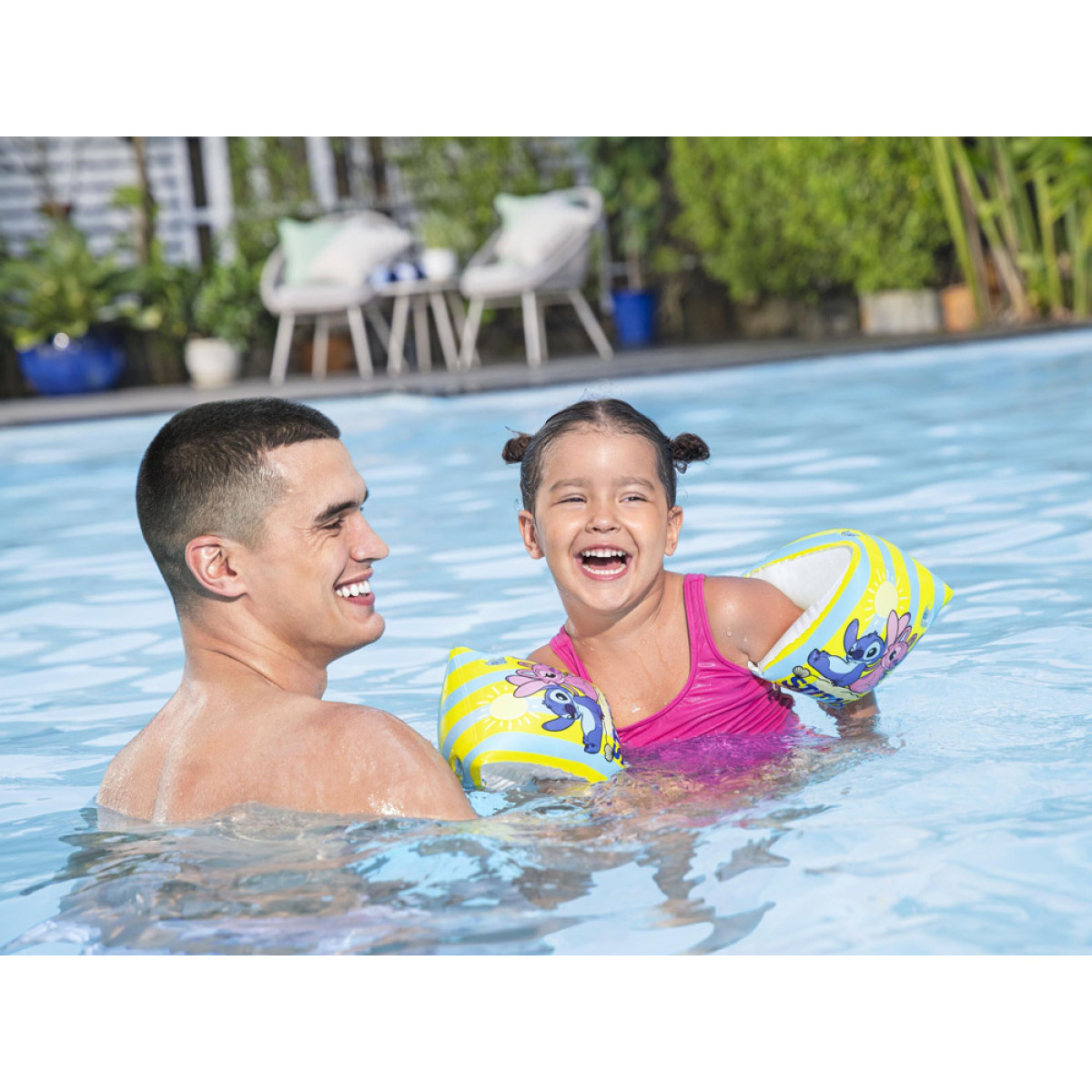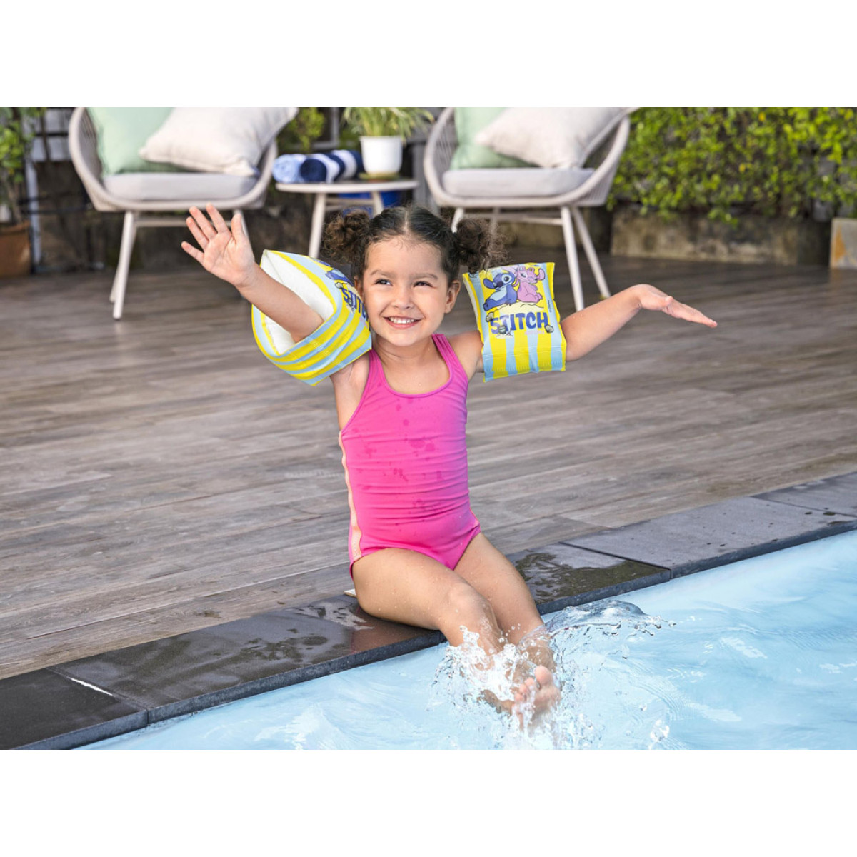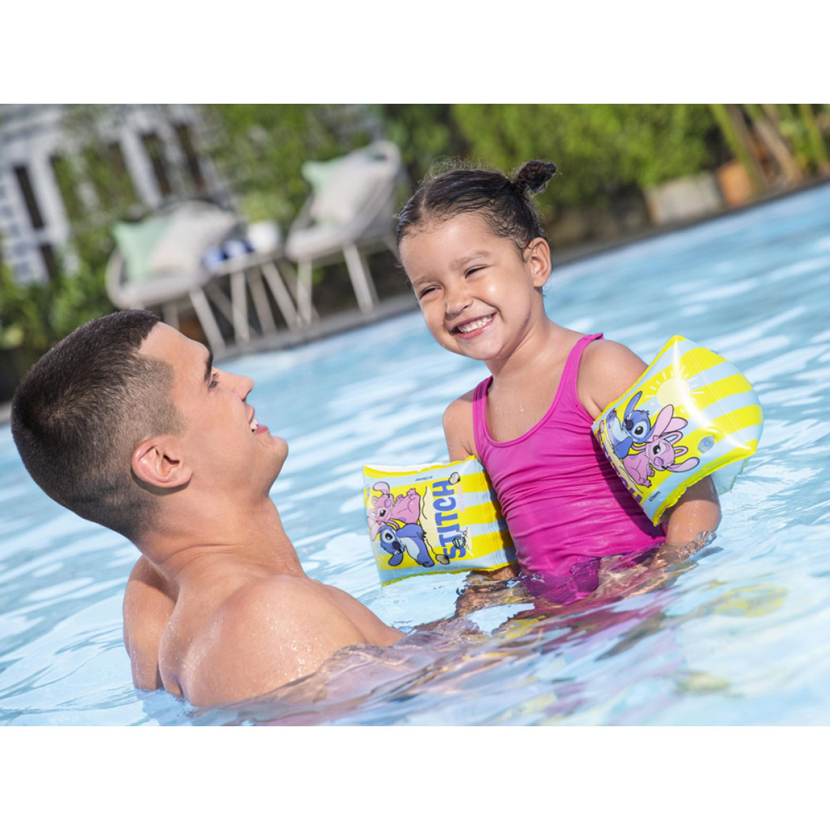 Krāsainas peldēšanas uzmavas ar Disney 'Lilo un Stičs' motīvu ir lielisks atbalsts bērniem, kuri sper pirmos soļus ūdenī. Pasteļtoņi un jautri Stiča un Andžijas tēli padara mācīšanos un rotaļas ūdenī vēl patīkamākas. Uzmavas lieliski derēs baseinā, pie ezera vai brīvdienu braucienos, palīdzot bērnam justies drošāk ūdenī.