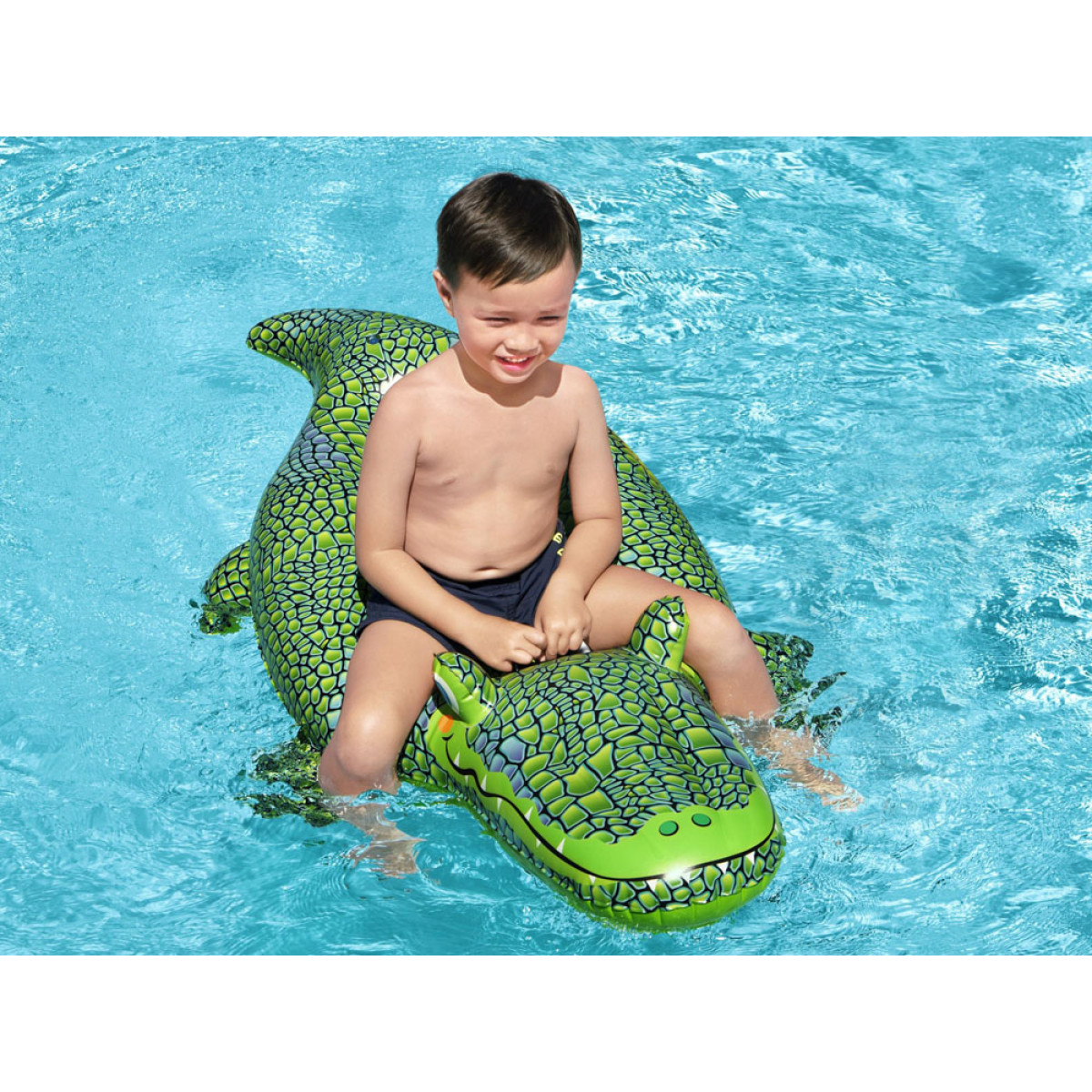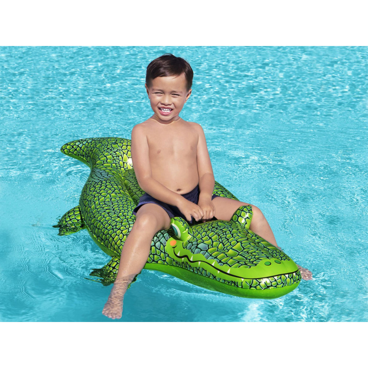 Piepūšamā rotaļlieta peldēšanai Krokodils zaļā krāsā ir lielisks Bestway piedāvājums šajā sezonā. Peldējošais Krokodils būs īsts hits pludmalēs. Produkts ar izmēriem 152 x 71 cm izgatavots no izturīga vinila.