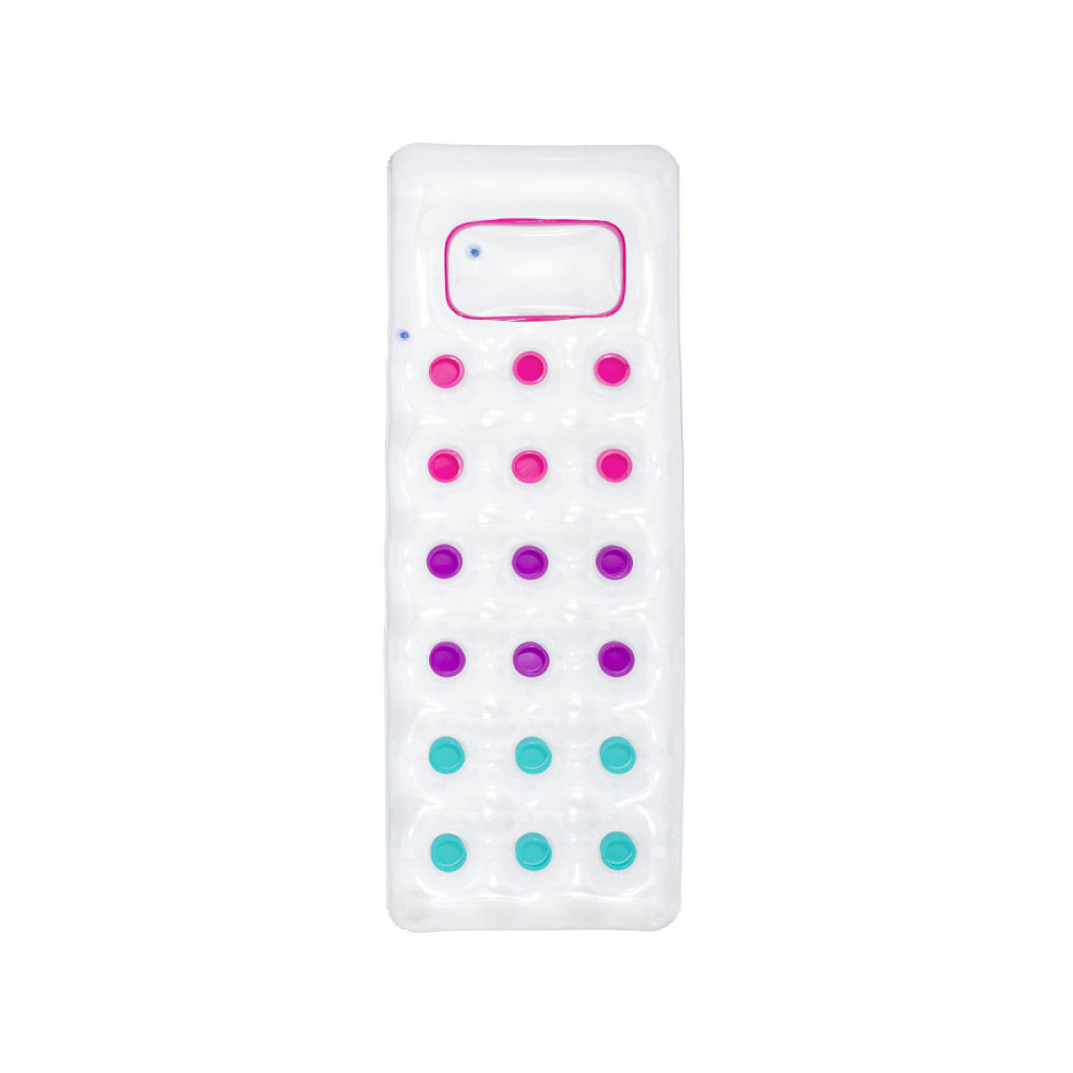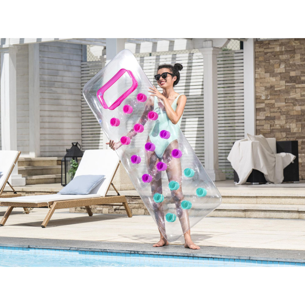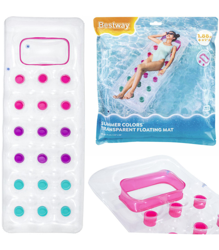 Bestway piepūšamais matracis ir lieliski piemērots atpūtai uz ūdens. Krāsains matracis ar caurspīdīgu logu nodrošina tīru baudījumu atpūtas laikā. Šis vasaras krāsās veidotais produkts izskatīsies ļoti iespaidīgi uz jebkuras pludmales.