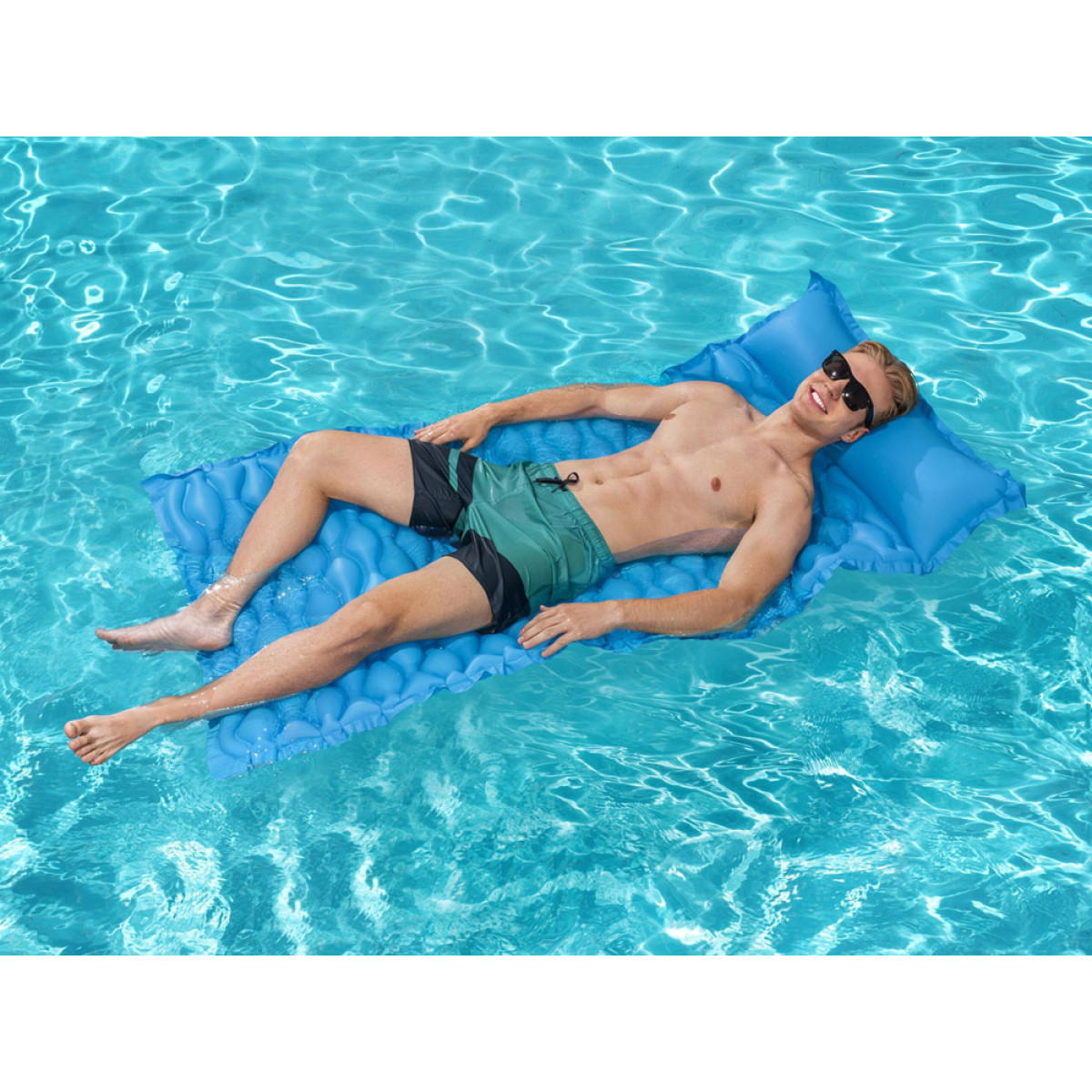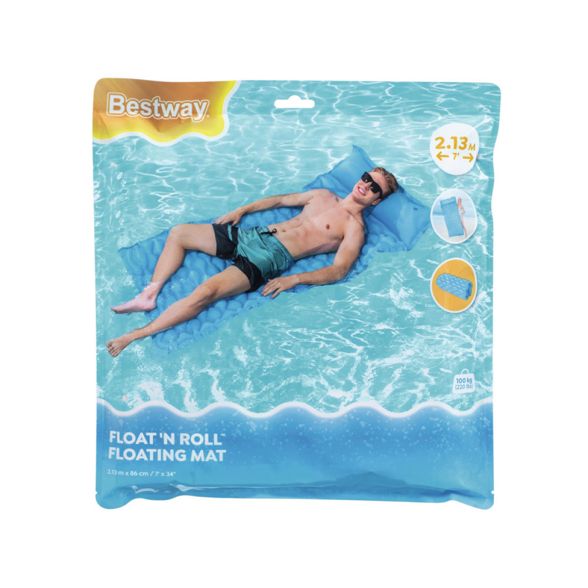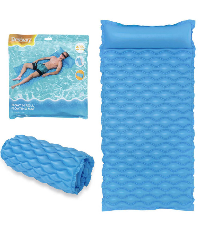 Bestway piepūšamais matracis, ko var ērti sarullēt, ir interesants piedāvājums nākamajai vasaras sezonai. Matracis ir piemērots atpūtai uz ūdens vai kā pludmales paklājs. Priekšrocība ir tā, ka to var ērti sarullēt, kas padara to viegli transportējamu un ideāli piemērotu pludmales atpūtai. Piepūšamā gulta ar galvas balstu ir aprīkota ar 2 gaisa kamerām un interesantu tekstūru, liela polsterēta virsma nodrošina komfortu karstās dienās. Matrača izmēri ir 213 cm x 86 cm, tas ir izgatavots no viegla, bet izturīga PVC materiāla un var izturēt svaru līdz 90 kg.