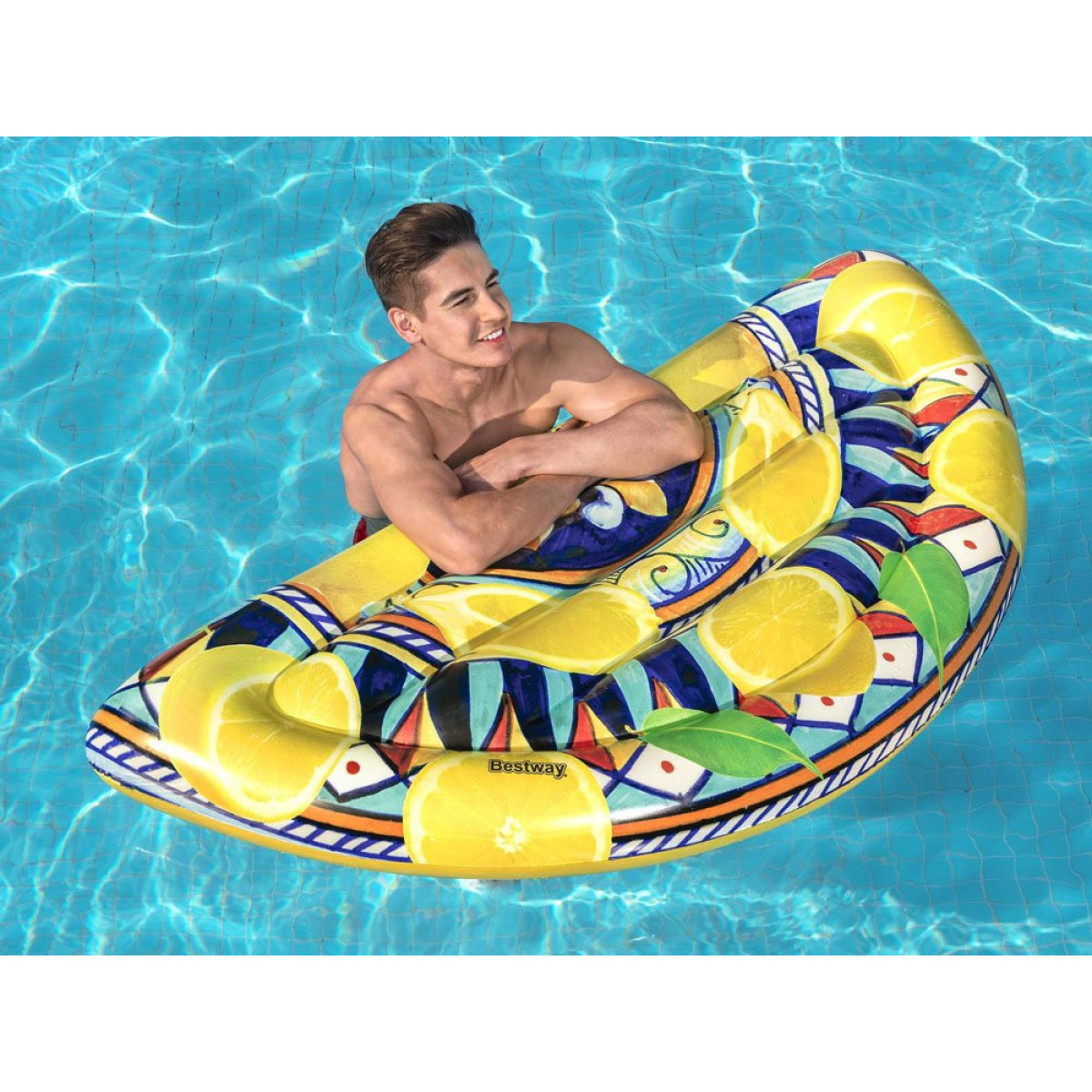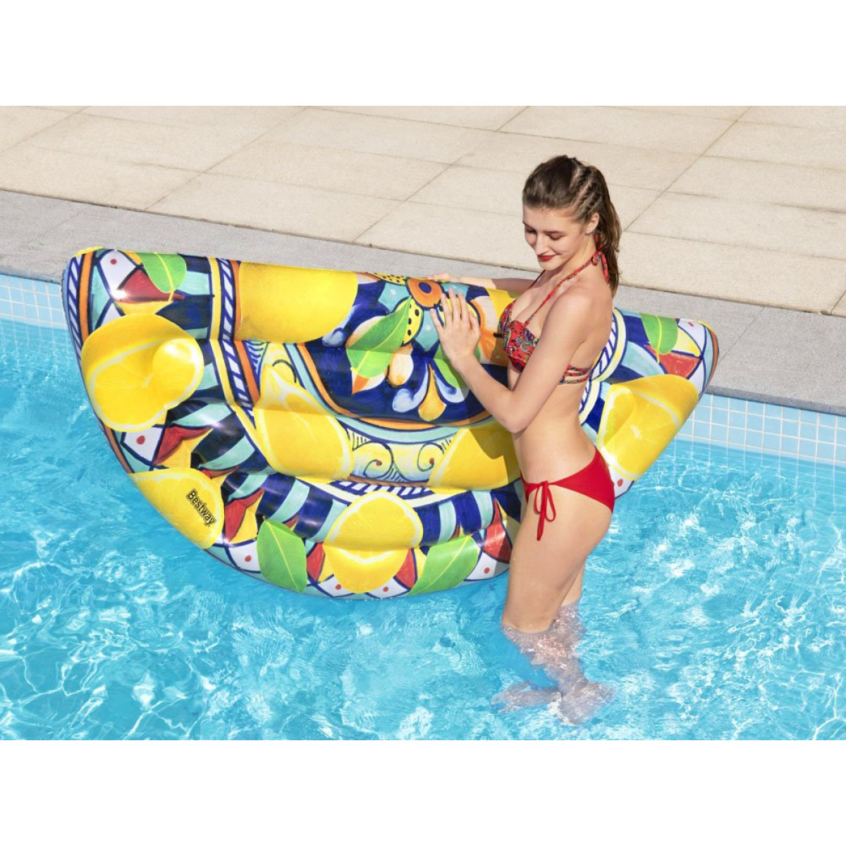 Piepūšamais matrači Sicīlija citrona formā ir šī gada Bestway piedāvājums, kas iedvesmots no Vidusjūras krāsām. Krāšņā un sulīgā grafika būs lielisks papildinājums jebkurai pludmalei. Krāsainie Sicīlijas matrača raksti piesaistīs pludmales apmeklētāju uzmanību, kas bauda atvaļinājumu smilšu pludmalē.
