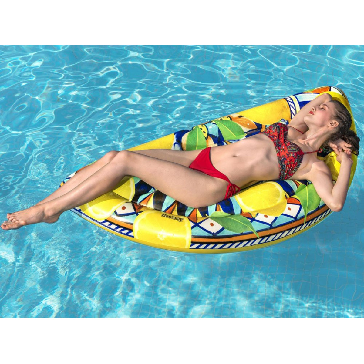 Citronu matrači izcili izskatīsies uz jebkura vasaras foto. Tā forma nodrošinās ērtu peldēšanu un relaksāciju. Jokomisiada veikals piedāvā plašu Bestway peldēšanas piederumu klāstu.