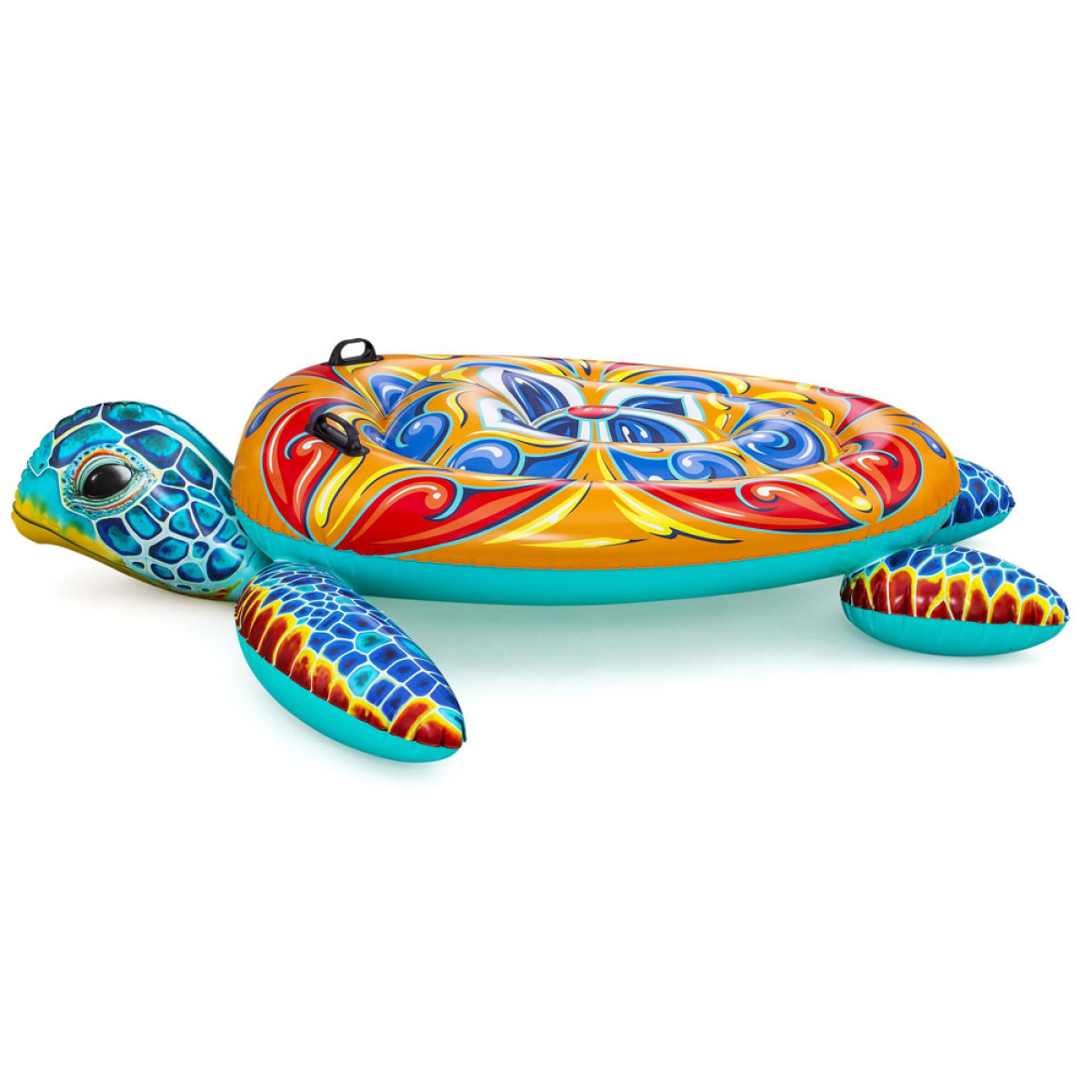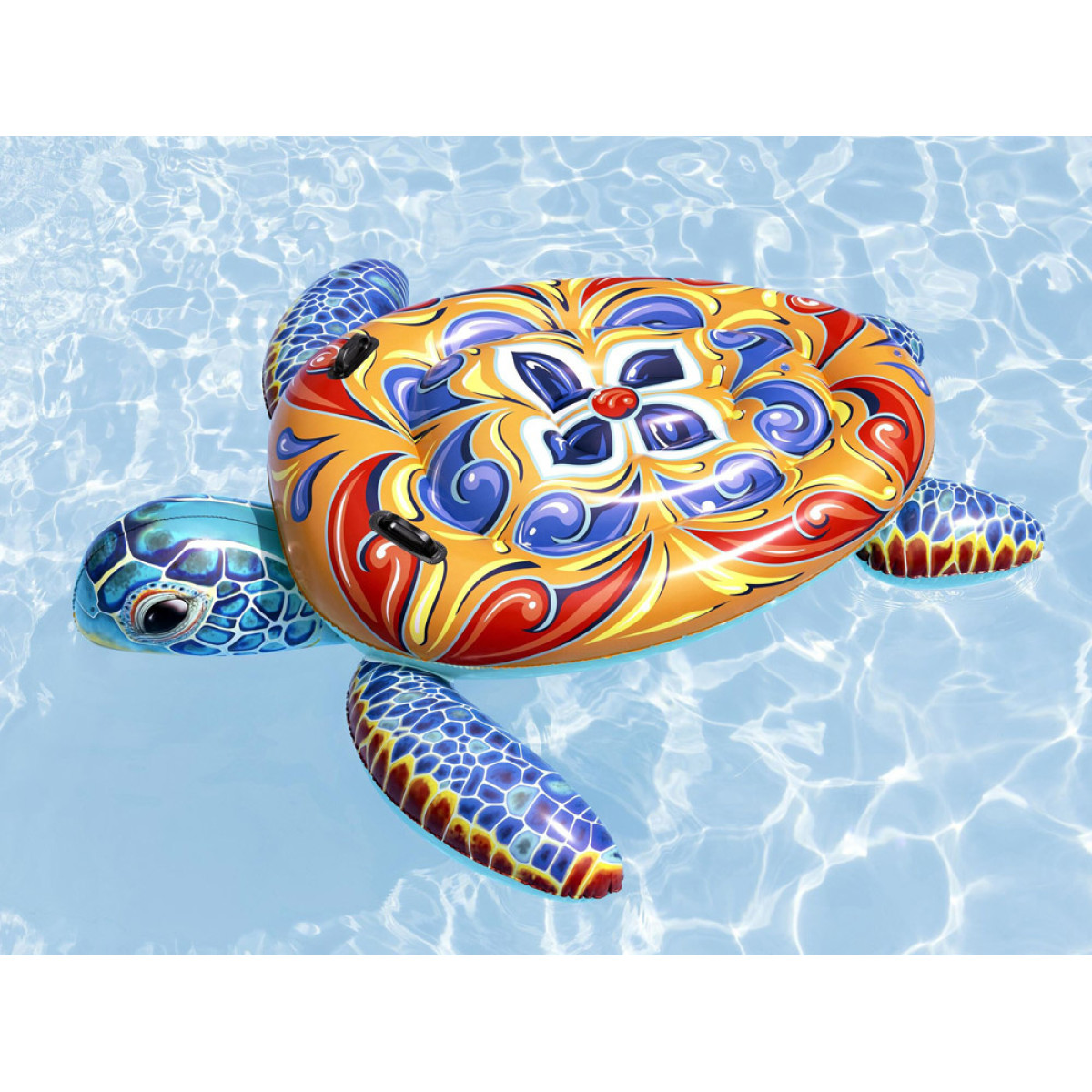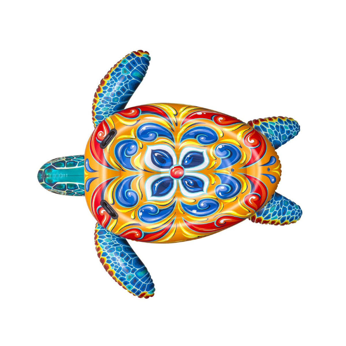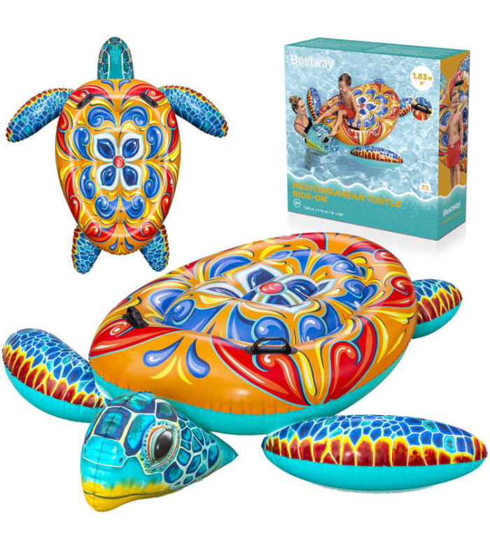 Izbaudi neaizmirstamus mirkļus pie ūdens ar unikālo piepūšamo matraci bruņurupuča formā no Bestway! Tas ir ideāls izvēle vasaras dienām, piedāvājot izklaidi un atpūtu gan bērniem, gan pieaugušajiem. Pateicoties pievilcīgajam bruņurupuča izskatam un krāsainajai Majolikas drukai, matracis kļūst par īstu atrakciju pludmalē, ezerā vai baseinā. Pateicoties rokturiem rokām un vieglajai konstrukcijai, tas ir ārkārtīgi viegli lietojams un nodrošina komfortu pat ilgstošās ūdens spēlēs.