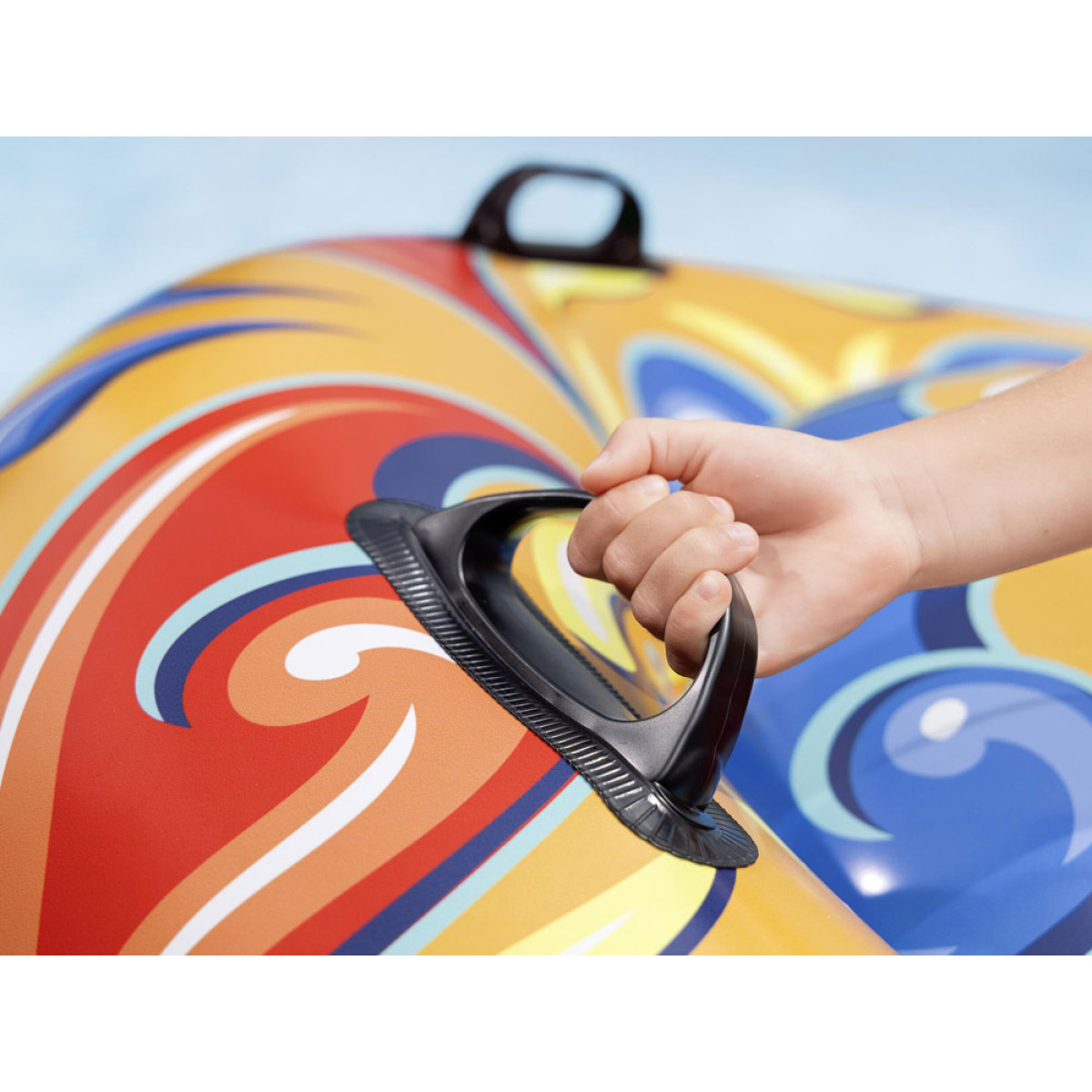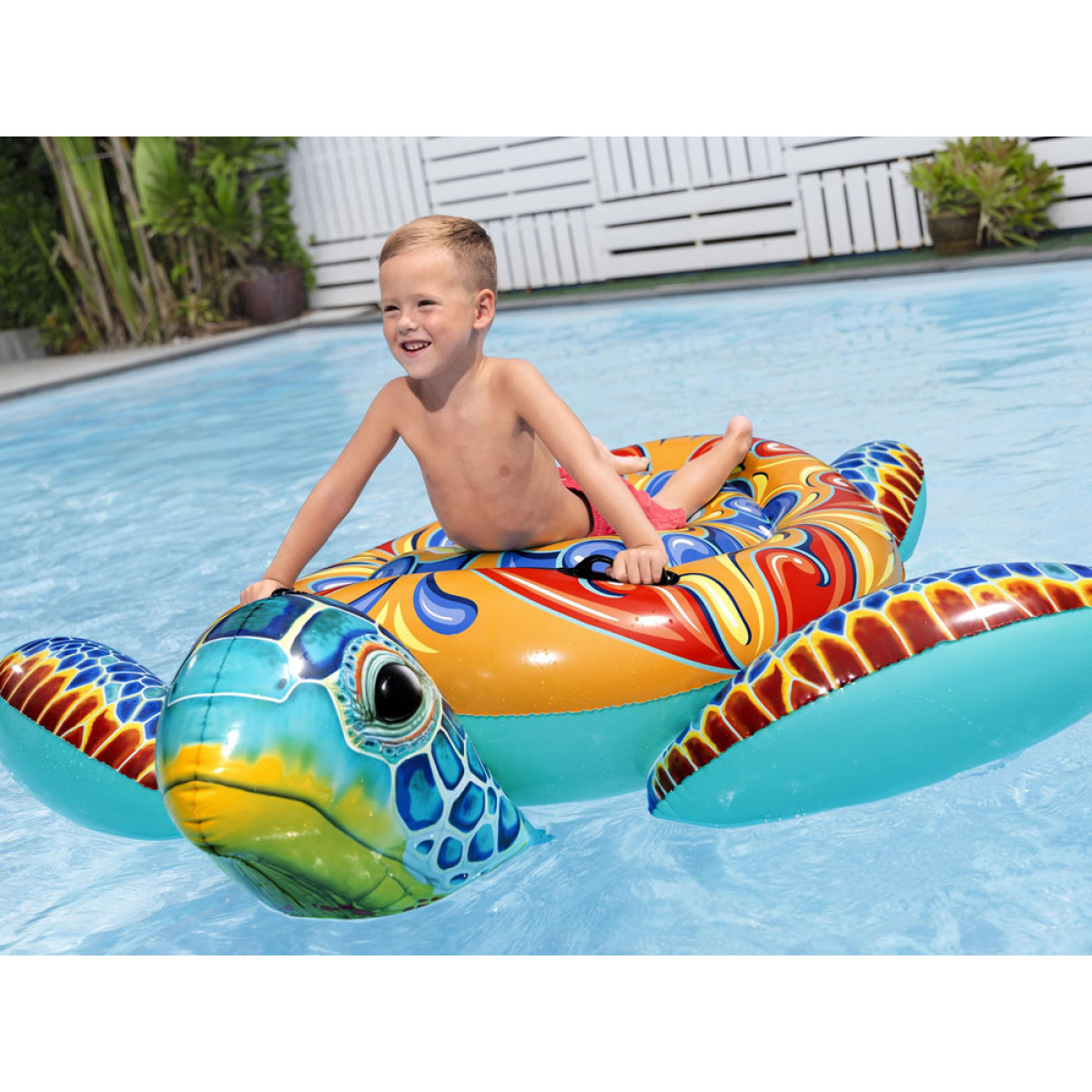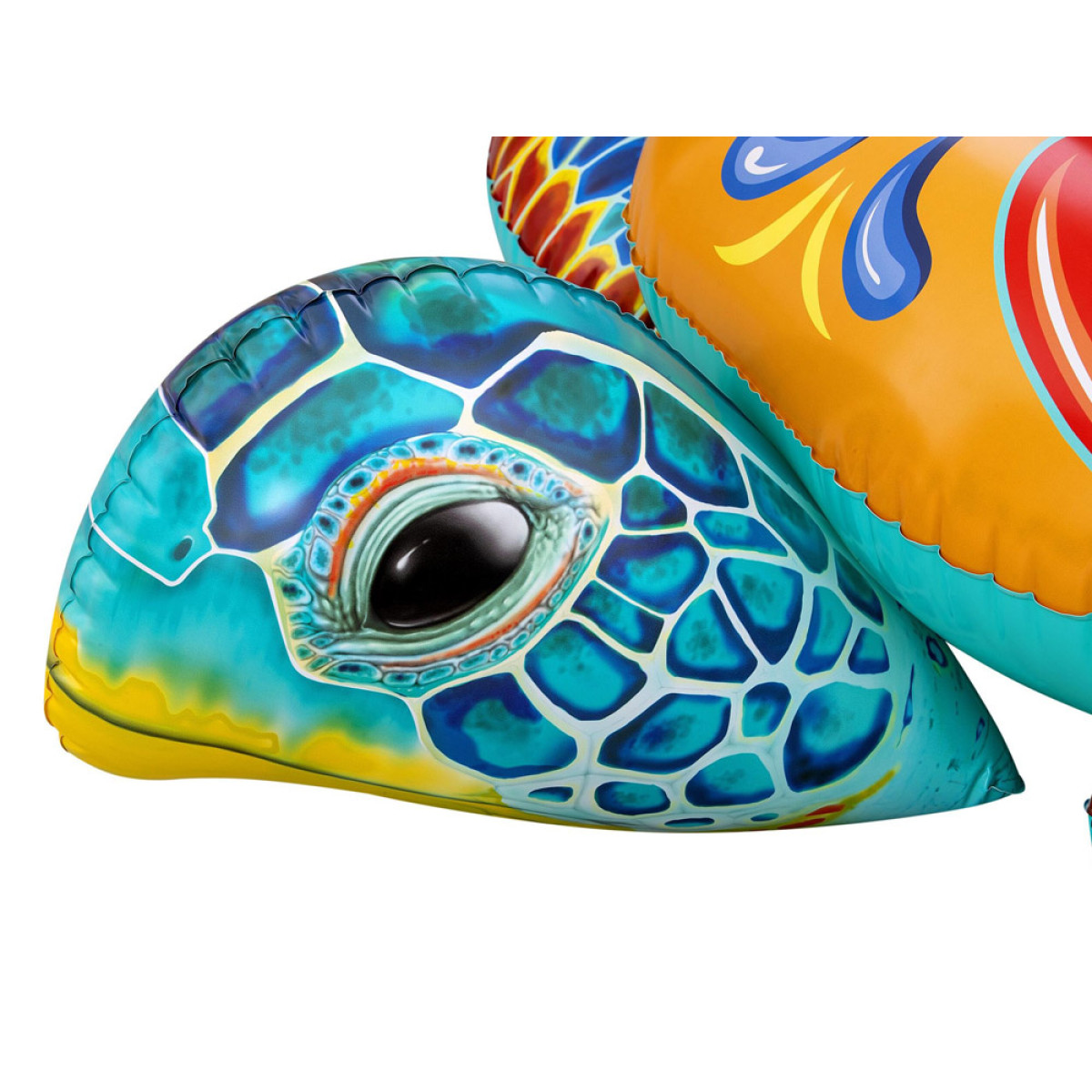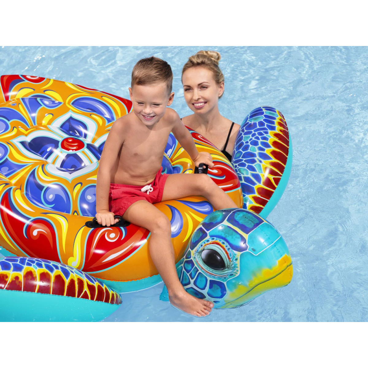 Izbaudi neaizmirstamus mirkļus pie ūdens ar unikālo piepūšamo matraci bruņurupuča formā no Bestway! Tas ir ideāls izvēle vasaras dienām, piedāvājot izklaidi un atpūtu gan bērniem, gan pieaugušajiem. Pateicoties pievilcīgajam bruņurupuča izskatam un krāsainajai Majolikas drukai, matracis kļūst par īstu atrakciju pludmalē, ezerā vai baseinā. Pateicoties rokturiem rokām un vieglajai konstrukcijai, tas ir ārkārtīgi viegli lietojams un nodrošina komfortu pat ilgstošās ūdens spēlēs.