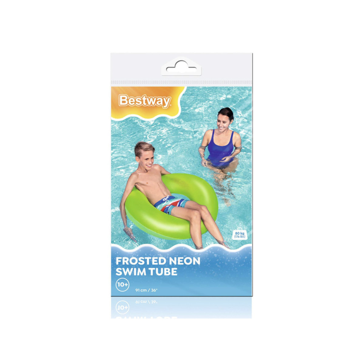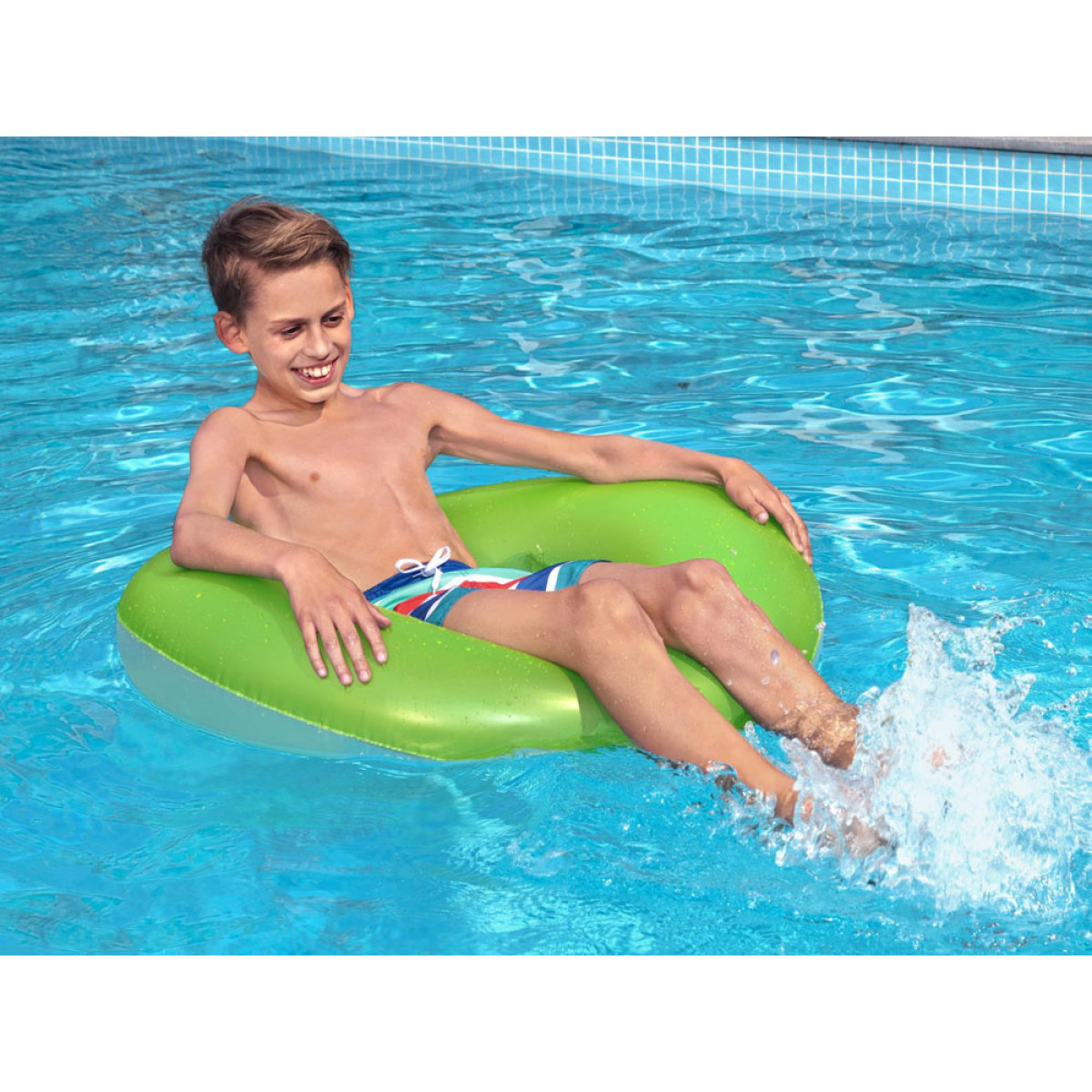 Liels piepūšamais peldēšanas riņķis neonā zaļā krāsā ir Bestway piedāvājums šai vasarai!