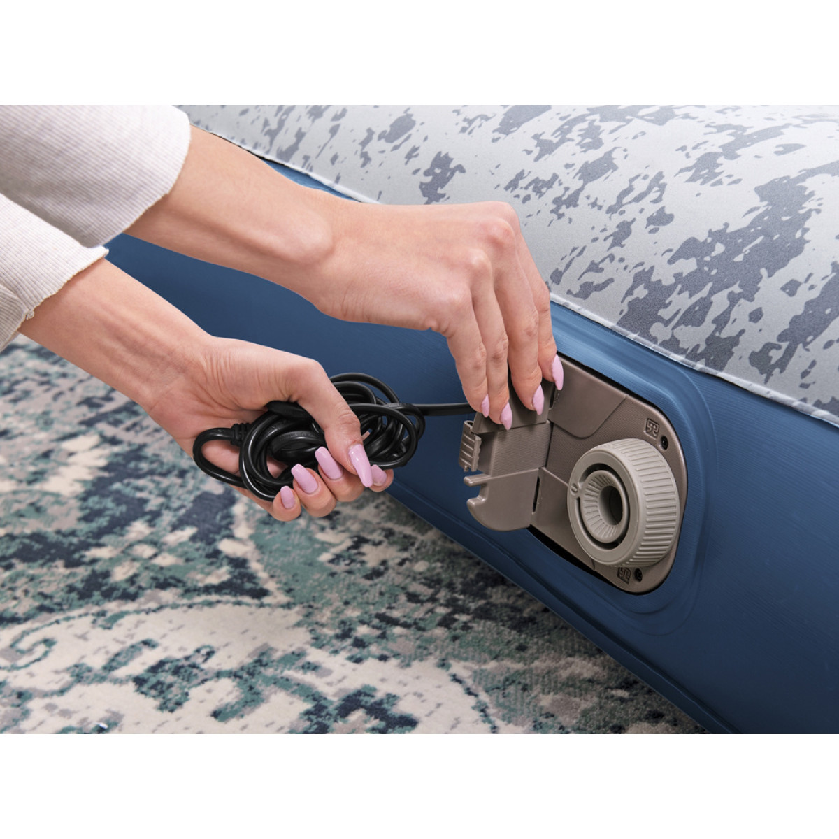 Liels matrača pluss ir iebūvēta pumpis, kas ļauj automātiski piepūst matraci, kā arī to var piepūst ar rokas pumpi.