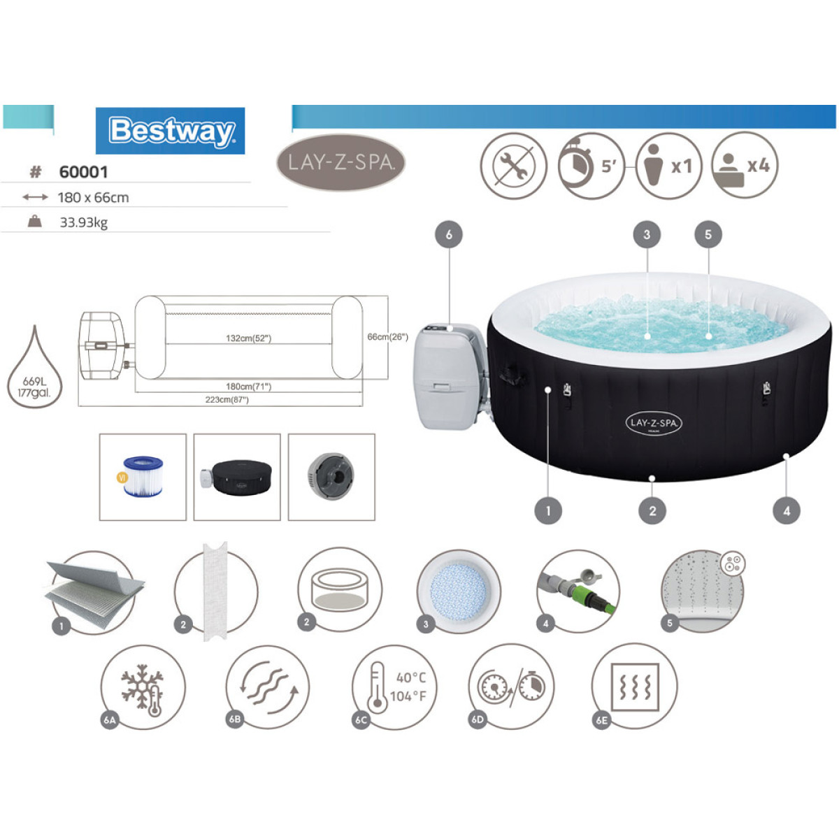 Bestway Lay-Z-Spa MIAMI 4os 180x66cm 60001
