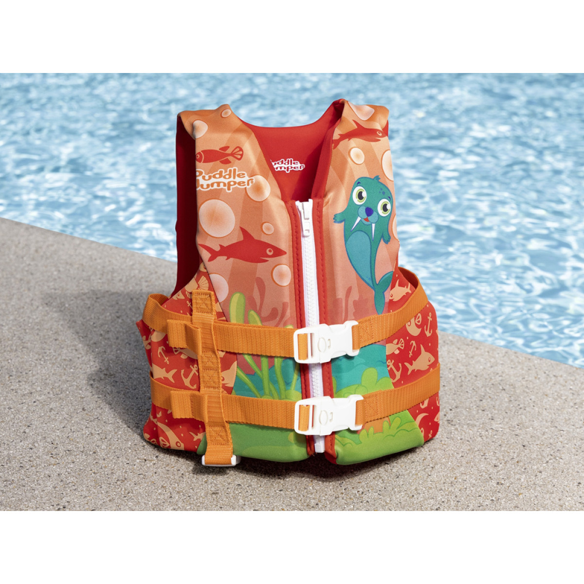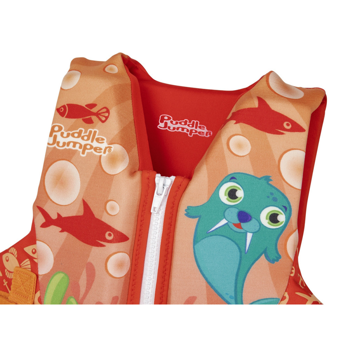 Šī krāsainā veste ar mīlīgu morša dizainu ir paredzēta bērniem vecumā no 3 līdz 6 gadiem, kas ļauj jūsu bērnam droši pavadīt laiku ūdenī kopā ar vecākiem, baudot vasaras spēles baseinā, ezerā vai jūrā.