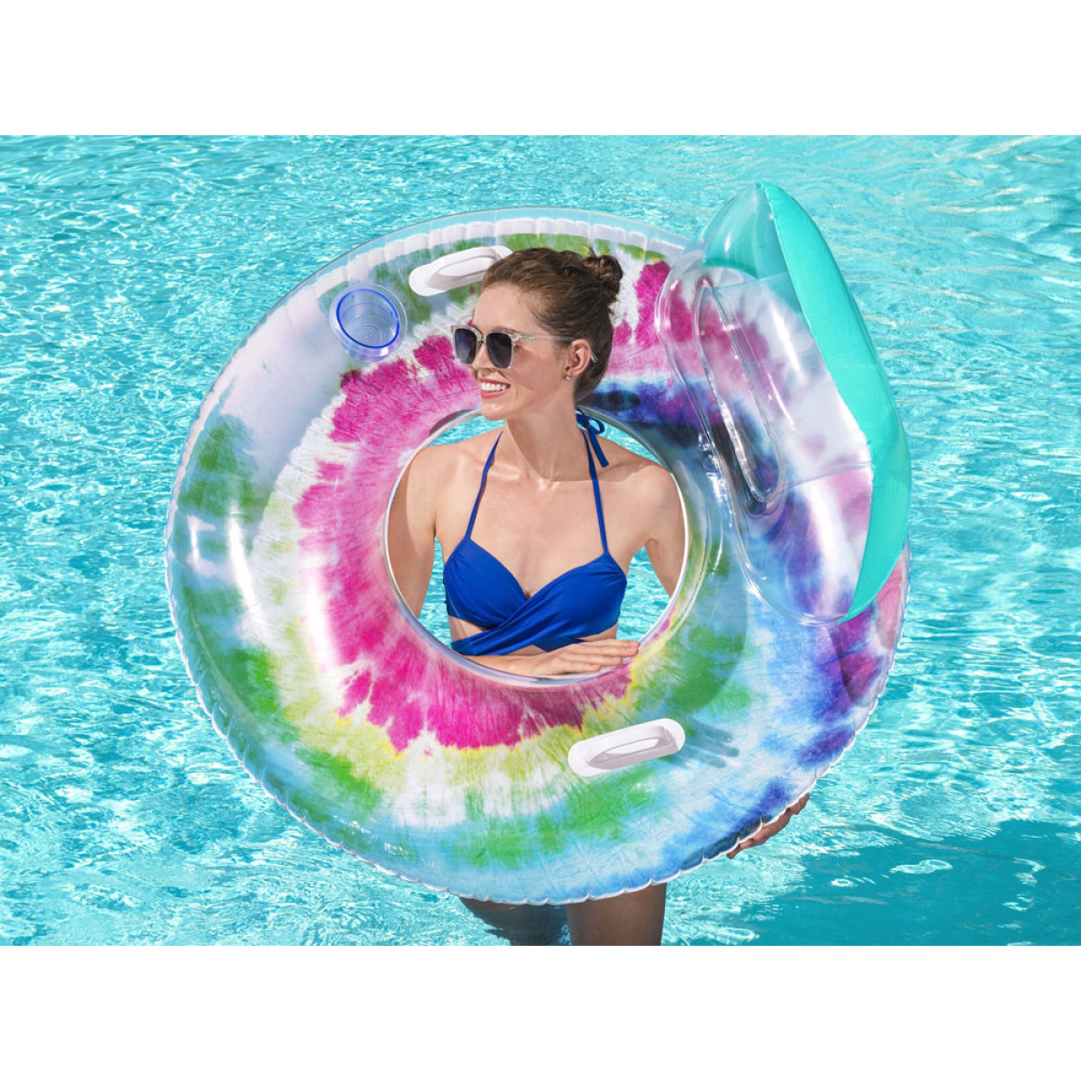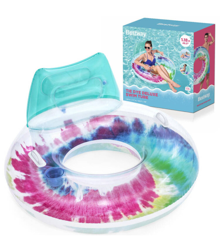 Uzsāciet savu vasaras atpūtu ar Bestway Tie Dye™ piepūšamo peldēšanas riņķi. Šis košais retro stila riņķis ir izgatavots no izturīga, pārbaudīta PVC materiāla, nodrošinot pilnīgu relaksāciju. Ērta atzveltne ļauj atpūsties, savukārt ērts dzērienu turētājs ļauj baudīt iecienīto dzērienu bez pārtraukuma. Droši rokturi ir piemēroti tiem, kas jūtas nedroši uz ūdens.