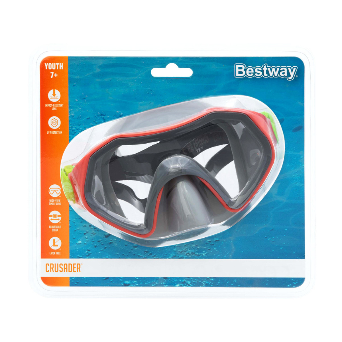 Bestway® krāsaina Crusader peldēšanas maska ir paredzēta bērniem no 7 gadu vecuma un noteikti būs noderīga pirmajās peldēšanas stundās.
