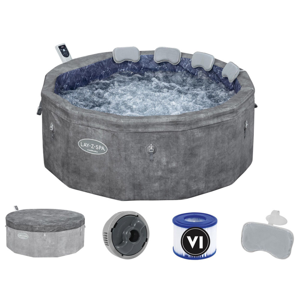 Lay-Z-Spa Carrara AirJet 6 ir mūsdienīga, energoefektīva dārza džakuzi, paredzēta 4-6 personām, kas radīta, lai nodrošinātu augstākā līmeņa relaksāciju. Šis modelis apvieno modernu gaisa masāžas tehnoloģiju, izturīgu ThermaCore™ konstrukciju un inteliģentu vadību, ieskaitot vadību ar mobilo aplikāciju.
