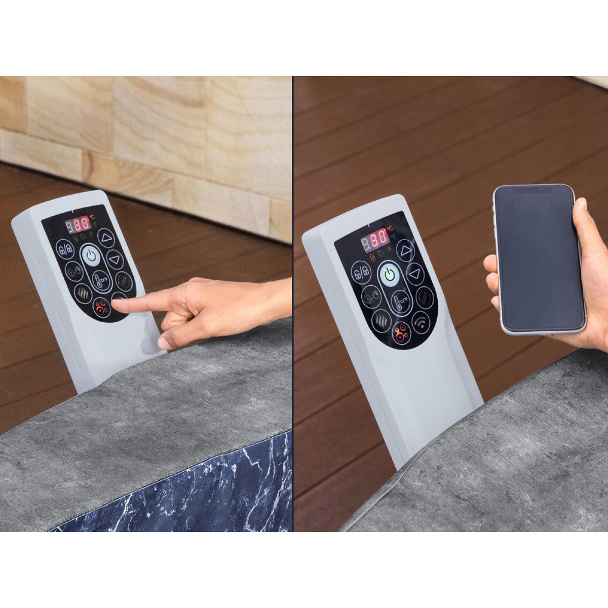 Pateicoties iebūvētajam Wi-Fi modulim, džakuzi var vadīt attālināti ar viedtālruņa palīdzību – regulēt temperatūru, ieslēgt masāžu, filtrēšanu vai apkuri. UltraFit™ daudzfunkcionālā sūknīte ar nolokāmu vadības paneli nodrošina ērtu un intuitīvu vadību, neaizņemot papildus vietu.