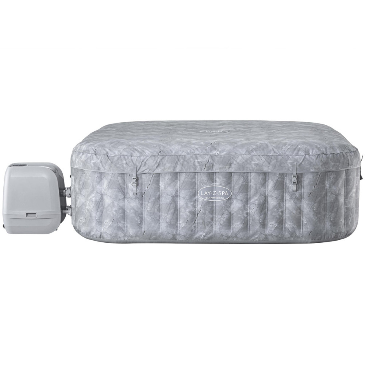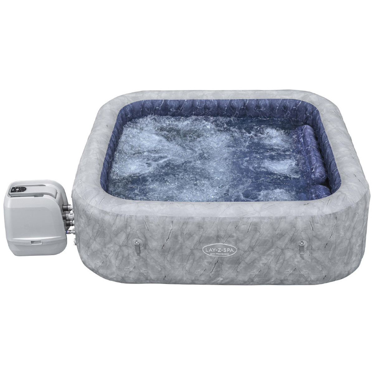 - Plašums: San Francisco modelis ar izmēriem 230 x 230 x 71 cm ir viens no lielākajiem Lay-Z-Spa, kas pieejams tirgū, un bez problēmām var uzņemt 5-7 cilvēkus.
