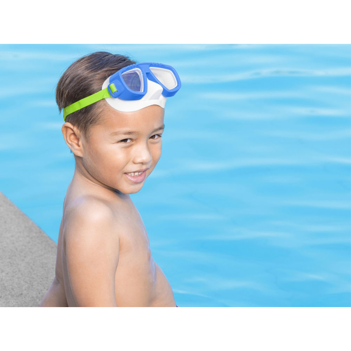 Šis ir ideāls piedāvājums zemūdens piedzīvojumu cienītājiem. Maska ir aprīkota ar polikarbonāta UV filtru lēcām, kas nodrošina plašu redzes leņķi, regulējamu siksnu un divkāršu blīvējumu. Tā lieliski pielāgojas sejas formai, novēršot ūdens noplūdi un nodrošinot optimālu komfortu lietošanas laikā. Piemērota bērniem no 3 gadu vecuma.