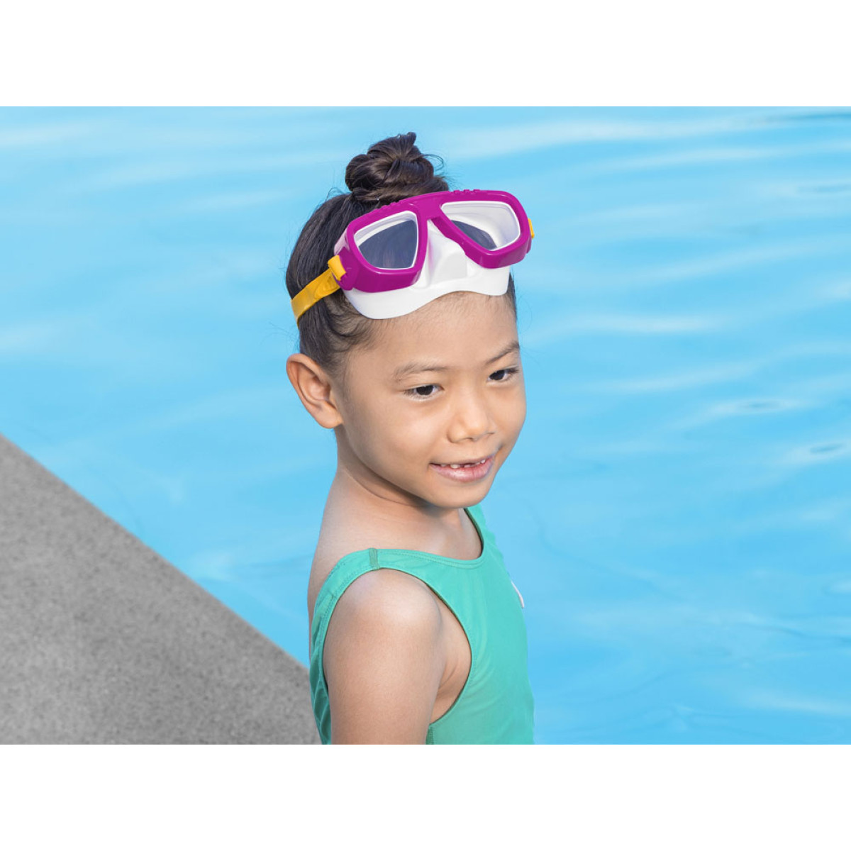 Šī maska ir ideāli piemērota zemūdens piedzīvojumu cienītājiem. Maska piedāvā: polikarbonāta UV filtrējošas lēcas, kas nodrošina plašu redzes lauku, regulējamu lenti un dubultu blīvējumu apkakli, kas garantē ūdensnecaurlaidību. Tā nodrošina ideālu pielāgošanos sejas formai, novēršot ūdens noplūdi un piedāvājot optimālu komfortu lietošanas laikā. Paredzēta bērniem no 3 gadu vecuma.