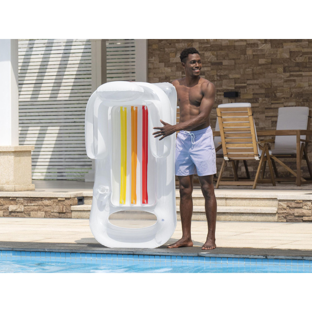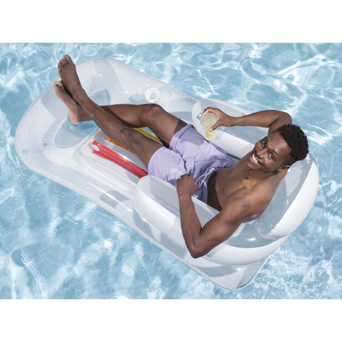 Matracis ir viegls un ērti pārvietojams, ideāli piemērots lietošanai baseinā, pie ezera vai jūras.