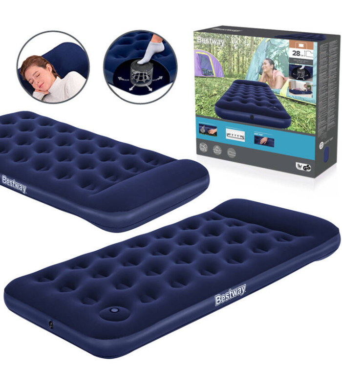 Bestway Air Mattress Twin ir lieliska izvēle tiem, kas novērtē komfortu un ērtības. Tas ir izgatavots no izturīga materiāla, kas nodrošina aizsardzību pret bojājumiem, un tā ērtā gulēšanas virsma, stabila konstrukcija un iebūvēts spilvens garantē komfortablu atpūtu. Coil-beam iekšējā rāmis nodrošina matrača stabilitāti, savienojot tā apakšējo un augšējo daļu ar horizontālām caurulēm. Liels matrača pluss ir iebūvētā kājas pumpa, kas ļauj ātri piepūst matraci jebkurā vietā. Matracis ir lieliski piemērots gan mājas lietošanai, gan pludmales atpūtai, kempingiem vai gulēšanai svaigā gaisā zem telts. Matrača augšējā daļa ir pārklāta ar mīkstu vinila materiālu.