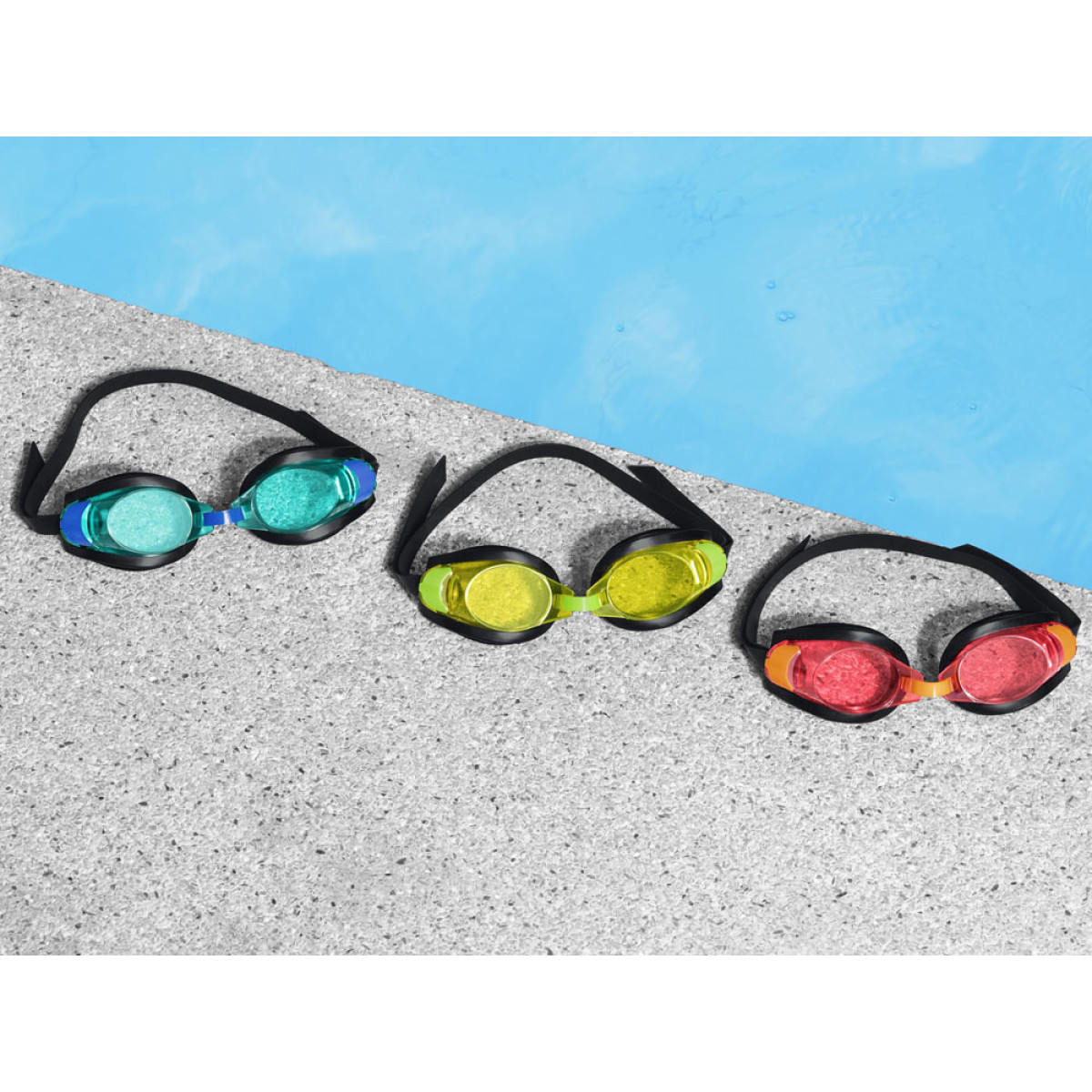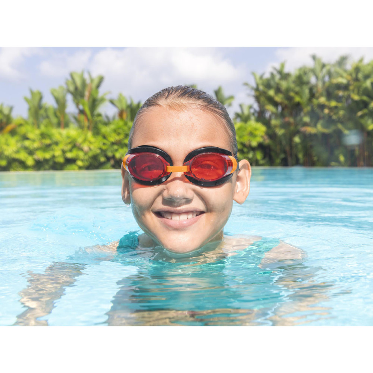 Bestway peldēšanas brilles ir lielisks izvēles variants bērniem no 7 gadu vecuma, kas vēlas baudīt komfortablu un drošu peldēšanu. Pateicoties regulējamai siksnai un ergonomiskai konstrukcijai, tās nodrošina ideālu pielāgošanos dažādiem sejas formām. Brilles garantē aizsardzību pret ūdeni un UV starojumu, un to tumšās, triecienizturīgās lēcas uzlabo redzamību, aizsargājot acis no saules un gaismas atspīdumiem.