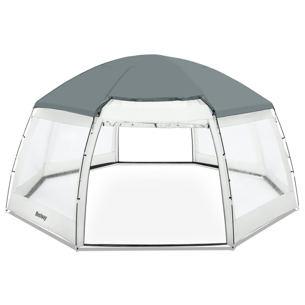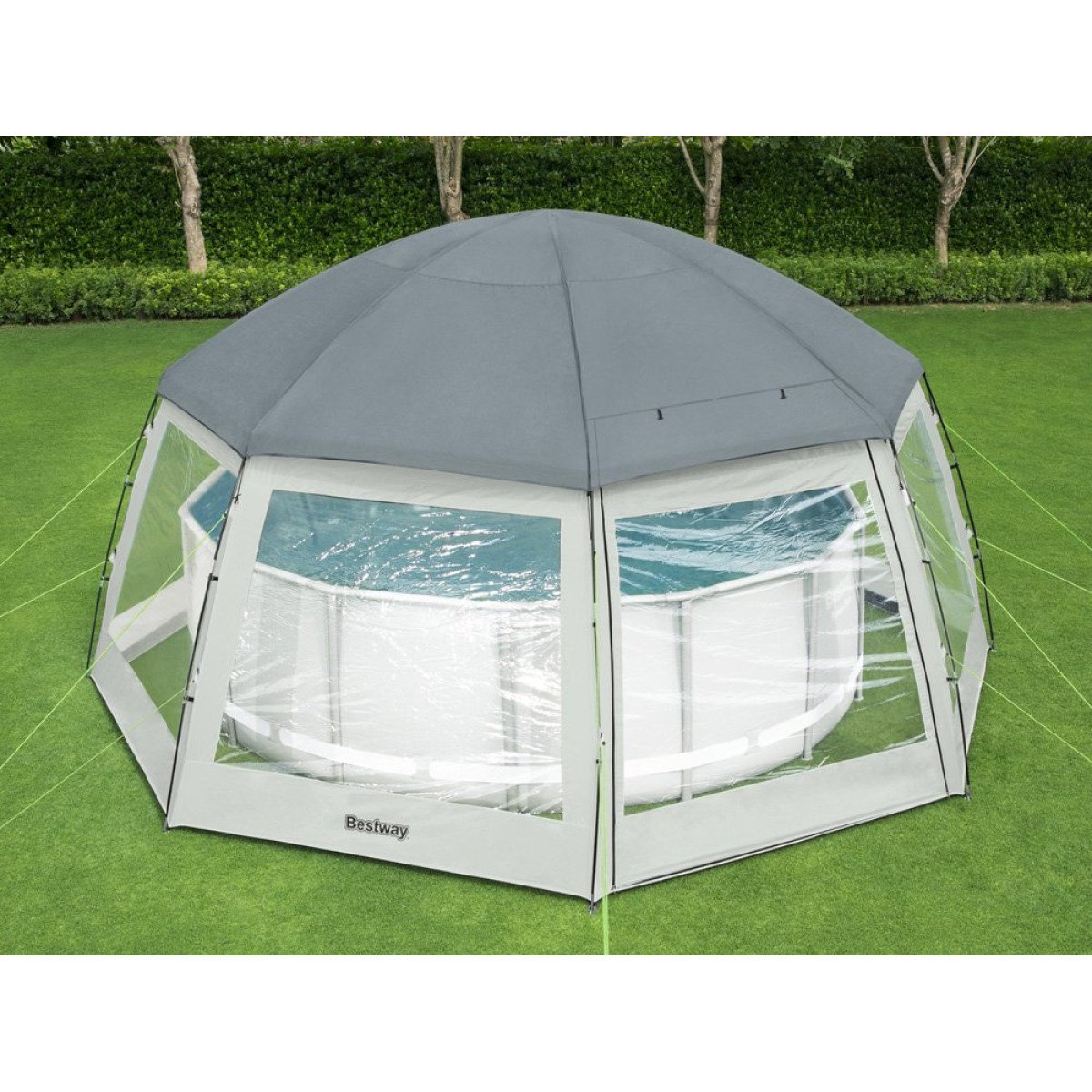 Bestway portatīva telts ir lielisks risinājums un nodrošina papildu komfortu, izmantojot dārza baseinus. Nojume ir izturīga pret ūdens uzsūkšanos, pateicoties īpaši izturīgiem poliestera materiāliem ar polimēra pārklājumu.