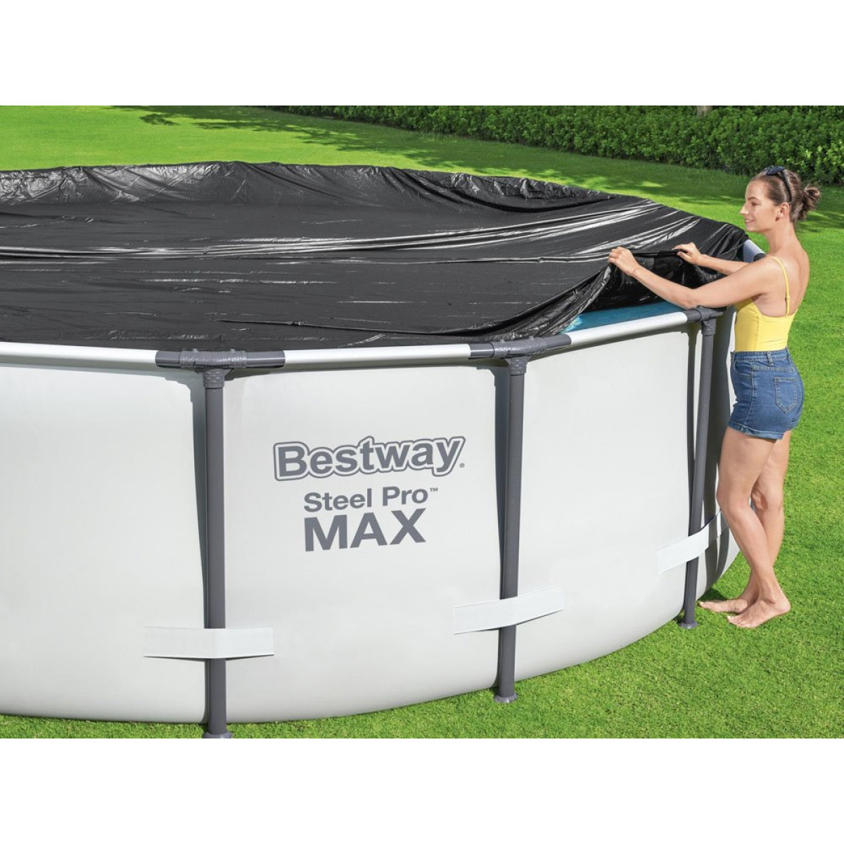 Piezīme: Pārsegs ir izmantojams baseinos, kas piepildīti ar 90% ūdens.