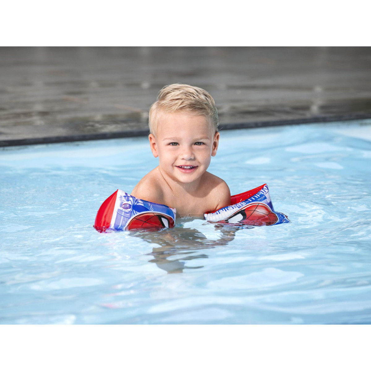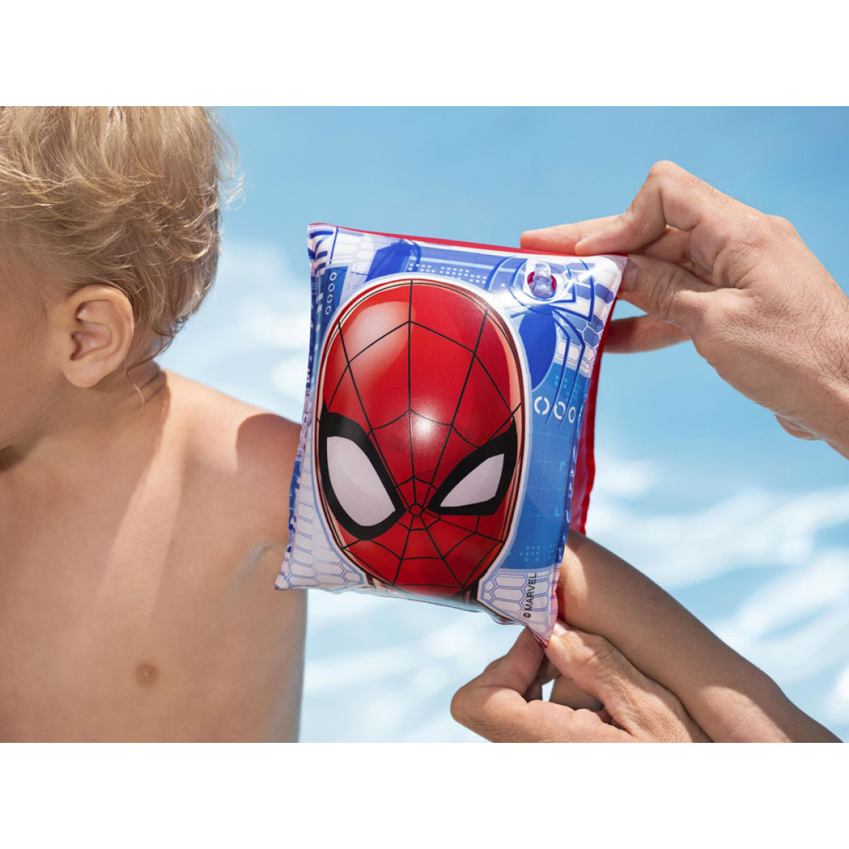 Spiderman grafika motivēs jebkuru bērnu apgūt peldēšanas prasmes. Piedurknes ir paredzētas lietošanai ūdenī, kur bērns var just dibenu, un vienmēr vecāku uzraudzībā.